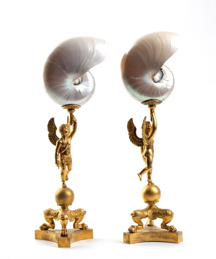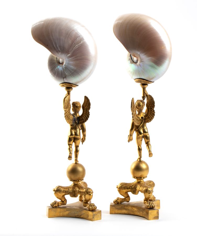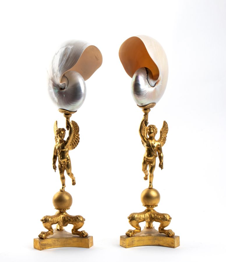 Coppia di nautilus su base in bronzo fine XIX secolo Altezza x larghezza x...