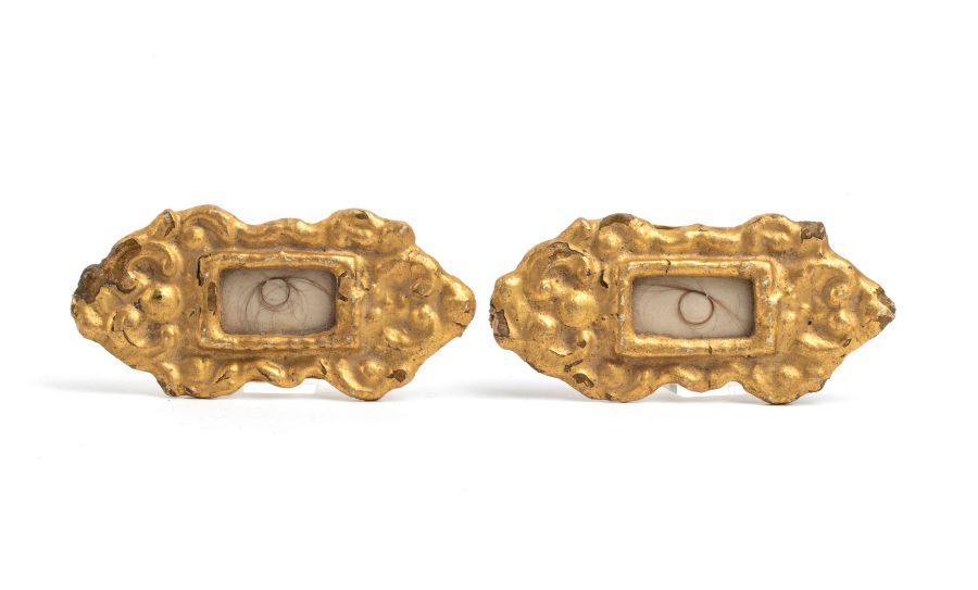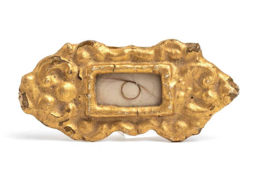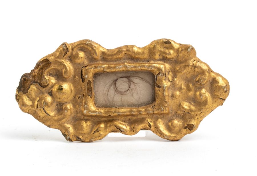 Reliquiari con capelli di Napoleone e Giuseppina XIX secolo in cornice dorata...