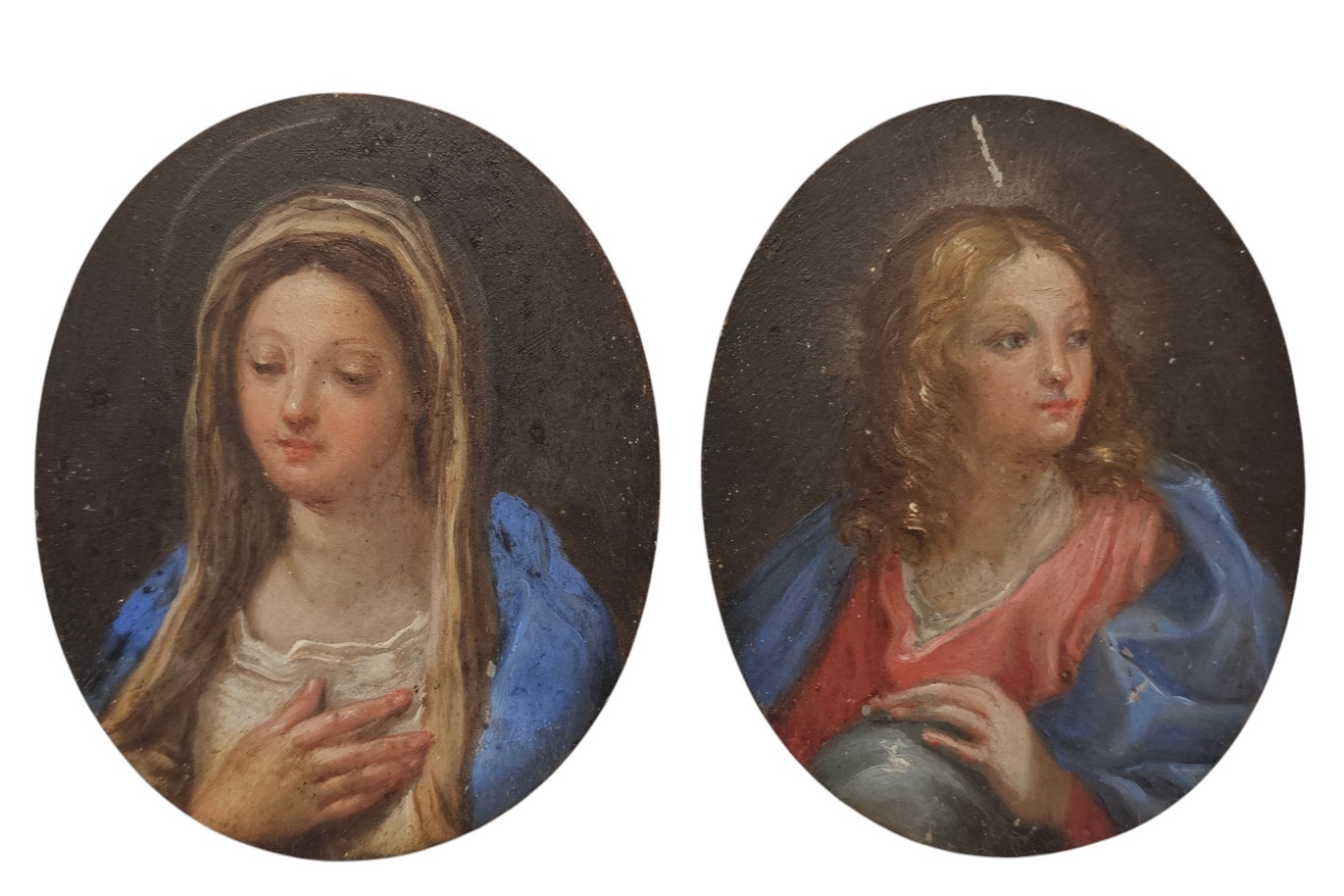 Coppia di dipinti olio su rame - Secolo XIX secolo Altezza x larghezza: 11,5 x 9,5 cm....