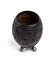 Altezza x diametro: 8 x 6 cm. Peso: 36 cm. ornamentale, con funzione di contenitore, montata su tre eleganti piedini in metallo di forma ovale. Il corpo della noce presenta una ricca decorazione incisa a mano: una figura ripetuta è inserita all'interno di archi, disposti in sequenza ritmica lungo tutta la superficie. Questi archi, in alternanza, ospitano motivi floreali stilizzati.