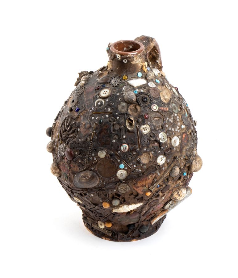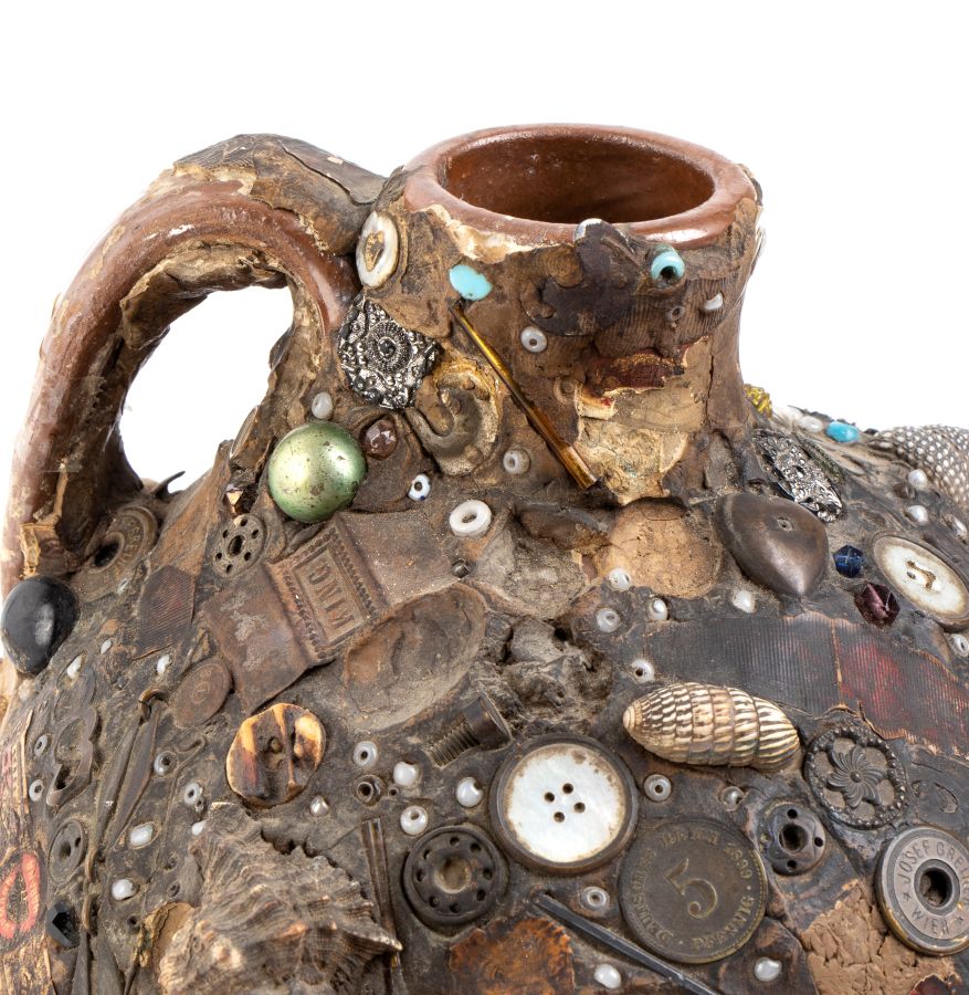 Altezza x diametro: 28 x 20 cm. Peso: 2980 gr. la tecnica del picassiette è una forma d’arte che consiste nel creare mosaici utilizzando pezzi di piatti, ceramiche, vetro o porcellane rotti. Il termine picassiette deriva dal francese "piquer" = prendere e "assiette" = piatto. In senso artistico indica il riutilizzo creativo di cocci e frammenti per creare opere decorative. Il vaso in questione è riconducibile proprio all’ambito dell’arte naïf e outsider e all'espressione dell'arte popolare in Francia.