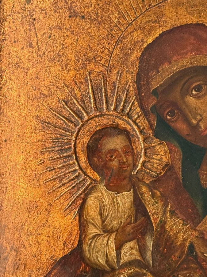 Altezza x larghezza: 48 x 25 cm. La Madonna di Smolensk appartiene al tipo fondamentale di raffigurazione della Vergine Odigitria, intesa come “Colei che mostra il cammino”.