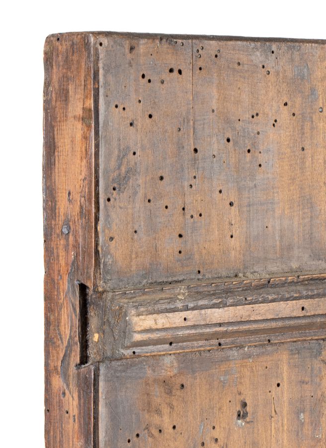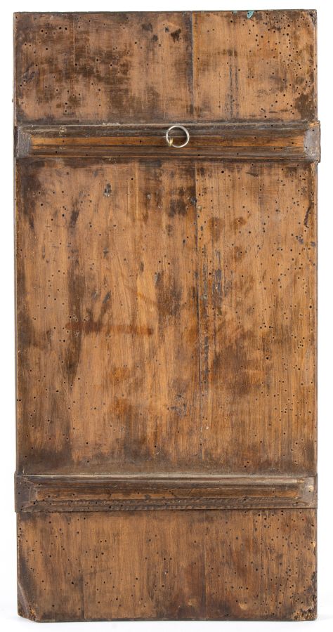 Altezza x larghezza: 54 x 27 cm. San Pietro stante a figura intera, con le chiavi del Paradiso appese al polso sinistro, mentre con entrambi le mani tiene un libro a rappresentare la dottrina e le lettere apostoliche.