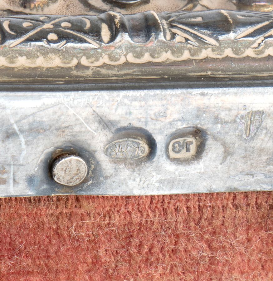Punzonata con il marchio polifunzionale per l'argento al titolo di 84 kokoshnik (875/1000) in uso a Mosca dal 1899 al 1908, assaggiatore Ivan Sergeyevich Lebedkin.