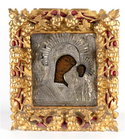 Icona con riza raffigurante Madonna con Bambino XIX secolo Altezza x...