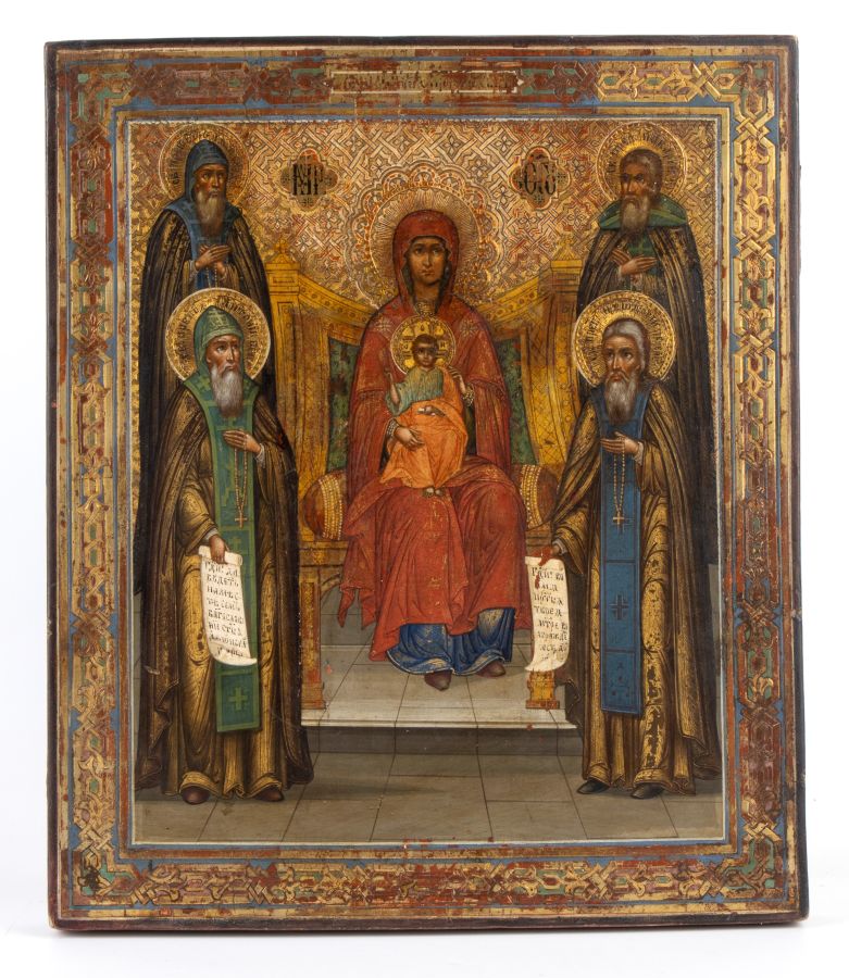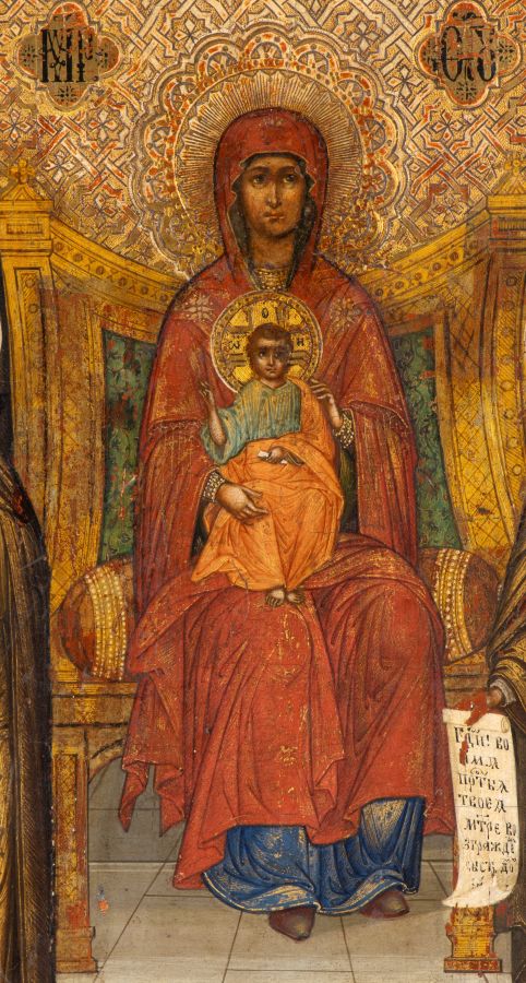 Icona russa raffigurante Madonna con Bambino e Santi XIX secolo