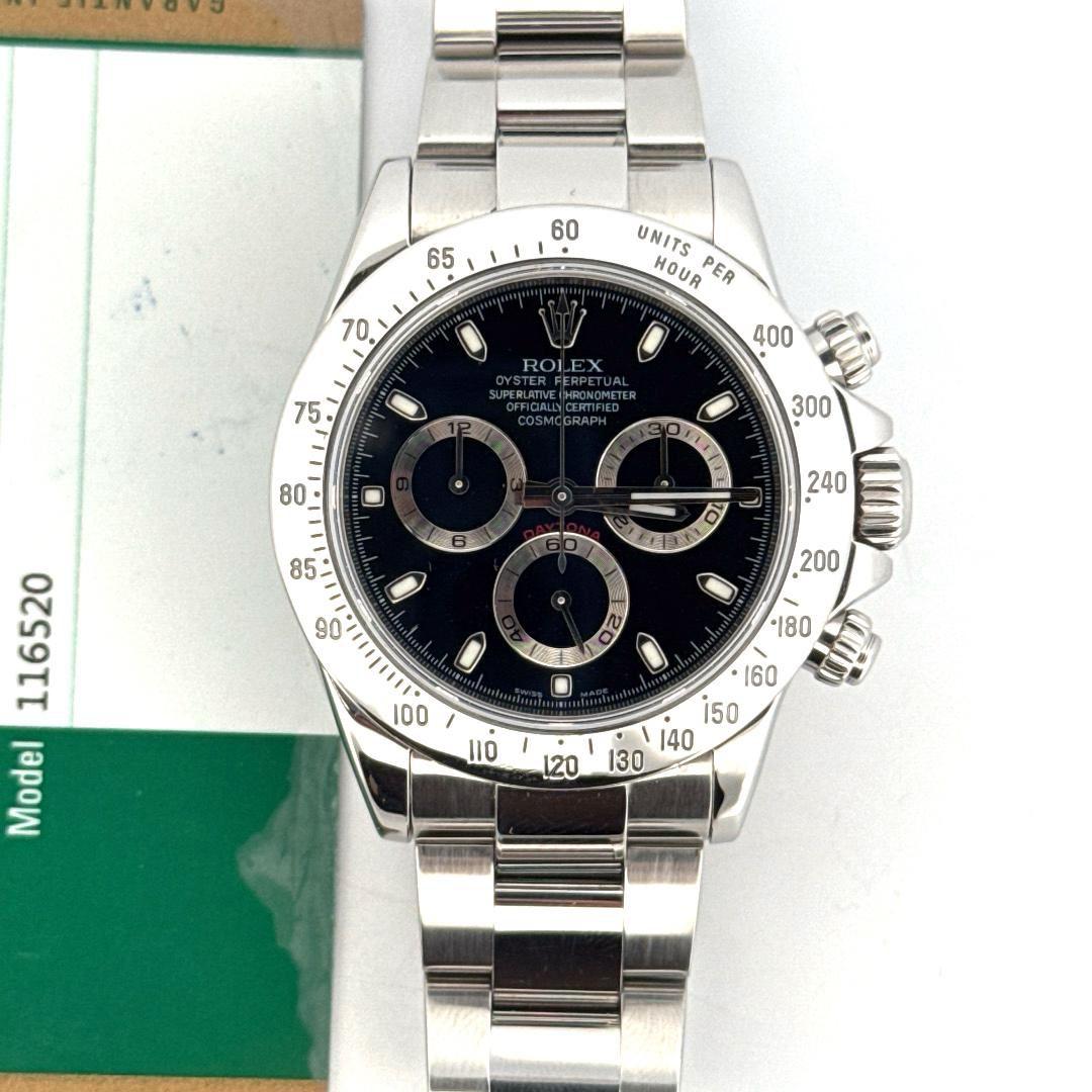 Marca Rolex Modello (Orologio) Daytona Numero di referenza 116520 chromalight Carica Automatico Materiale della cassa Acciaio Materiale cinturino Acciaio Anno di produzione 2014 Condizione Usato (Ottimo) documenti originali, no box Materiale della cassa Acciaio Diametro 40 mm Impermeabile 10 ATM Materiale lunetta Acciaio Vetro Vetro zaffiro Quadrante nero Numeri sul quadrante Senza numeri Cinturino Materiale cinturino Acciaio Colore cinturino Acciaio Chiusura Déployante Materiale chiusura Acciaio