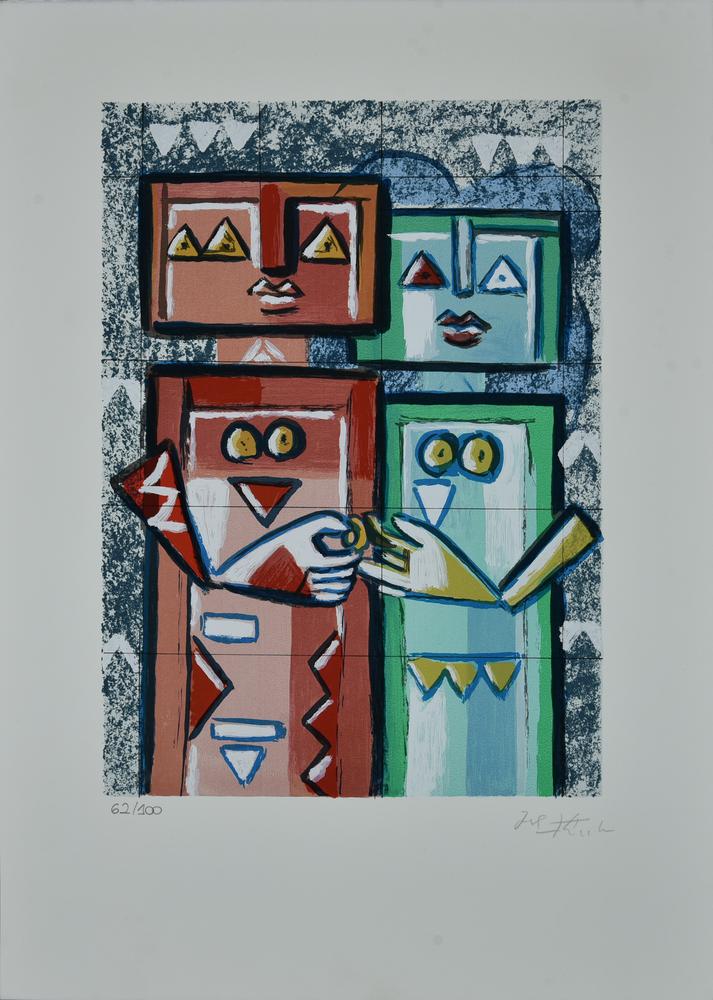 Ibrahim Kodra COPPIA DI SERIGRAFIE SENZA TITOLO serigrafia, cm 35x25; es....
