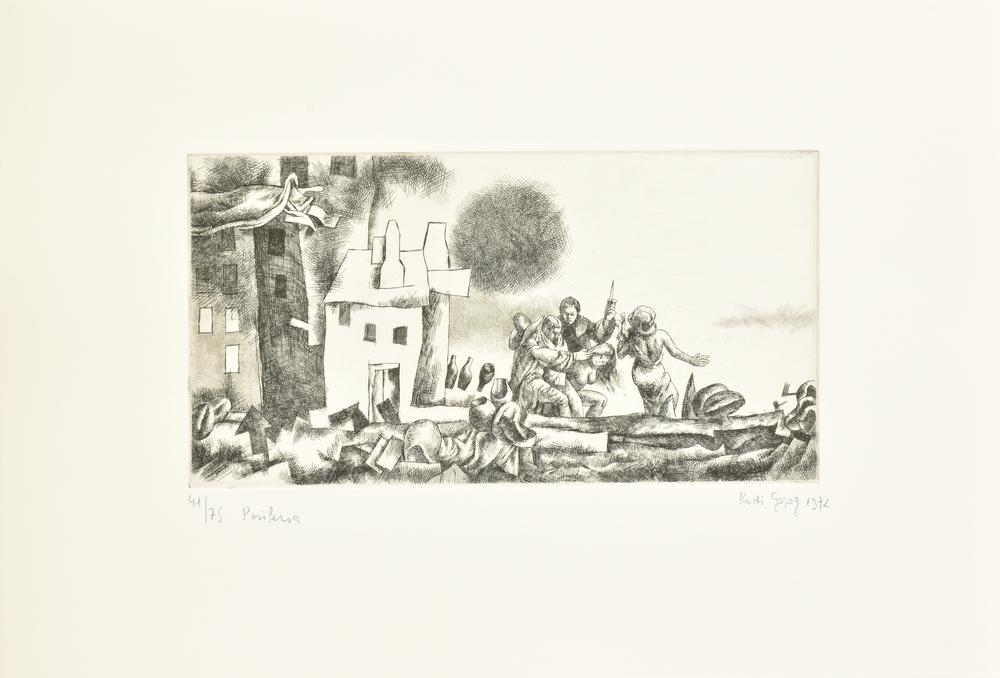Lotto 59 | Rudi Gorog PERIFERIA incisione su carta Fabriano, battuta cm 16x30, su foglio...