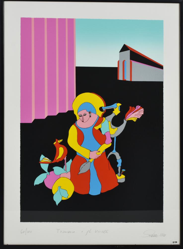 A. Ratti SAN FRANCESCO E GLI UCCELLI serigrafia su carta, cm 69x50; es....