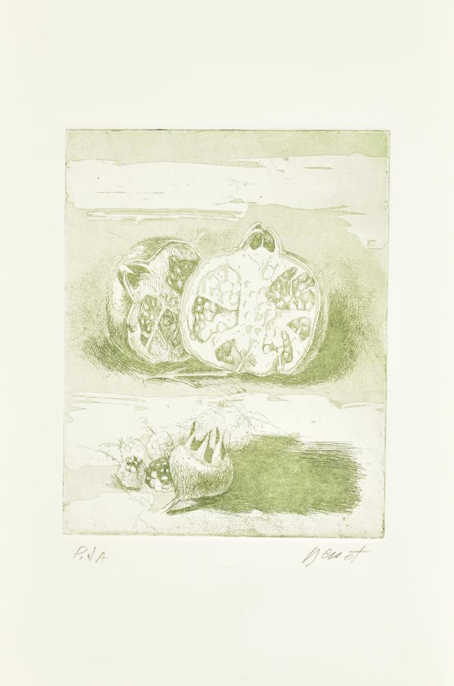 Genot NATURA MORTA incisione su carta, battuta cm 19x15, su foglio cm 33x22;...