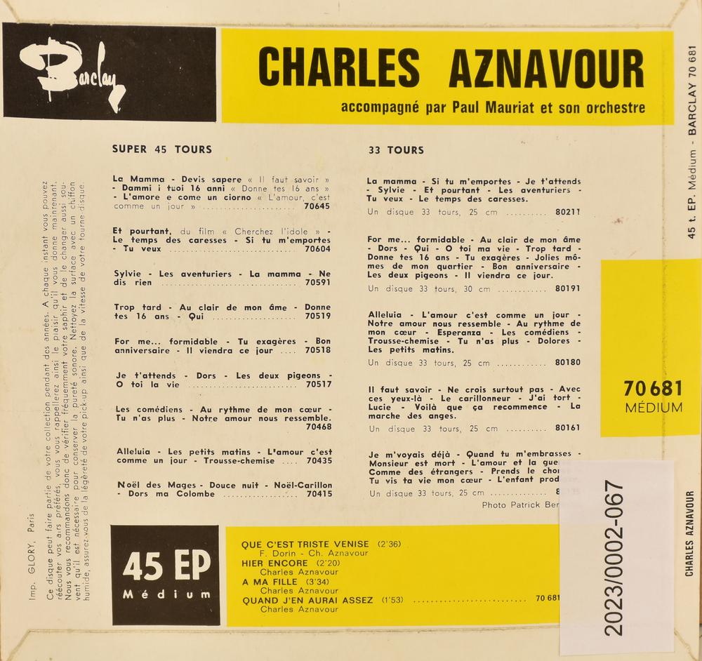 EP 45 GIRI Charles Aznavour - Que c'est triste venise - Hier encore - A ma...