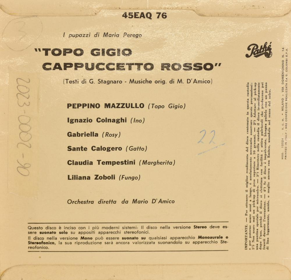 Precedente Lotto 95 Successivo Livebid - Via Tiziano Vecellio 34/D, 10126 Torino DISCHI VINTAGE E DA COLLEZIONE Sessione Unica mercoledì 4 giugno 2025 ore 21:00 (UTC +01:00) EP 45 GIRI Topo Gigio, Cappuccetto Rosso EP 45 GIRITopo Gigio, Cappuccetto Rosso