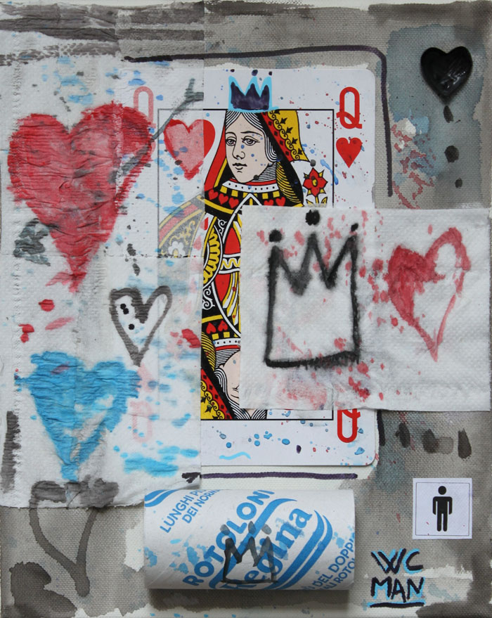 WC MAN Qualunque REGINA DI CUORI 2013 Tecnica mista su tela 30x24 Certificato di autenticità