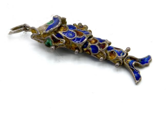 PENDENTE IN ARGENTONE E SMALTI MODELLATO A PESCE
