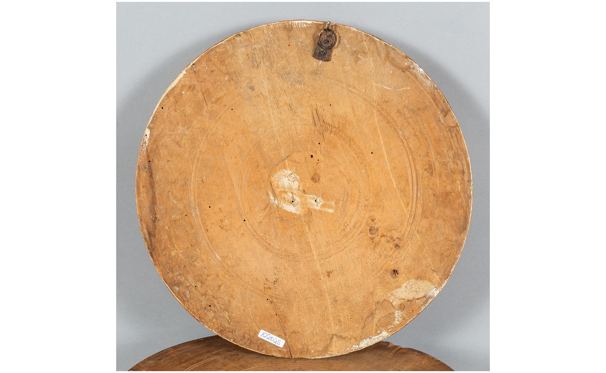 Scuola italiana sec.XVIII 'Paesaggi animati da figure' coppia di olii su tavola di forma rotonda