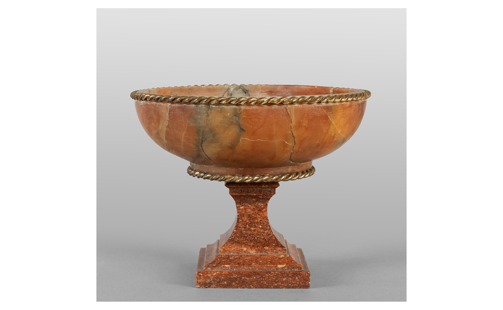 Coppa in alabastro bordata in bronzo con base in marmo fine sec.XVIII