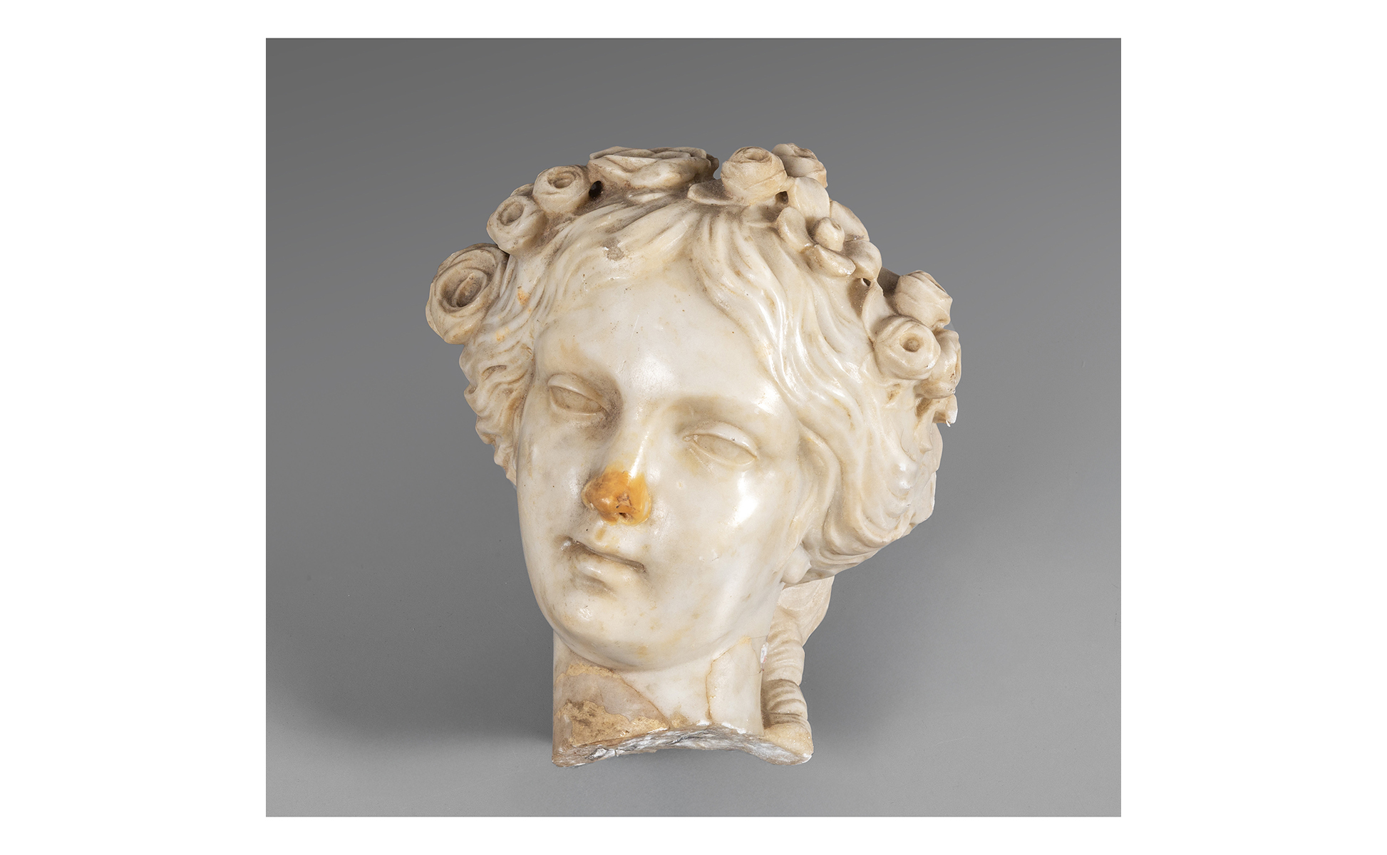 Testa di giovane fanciulla scultura in marmo statuario Roma sec.XVII