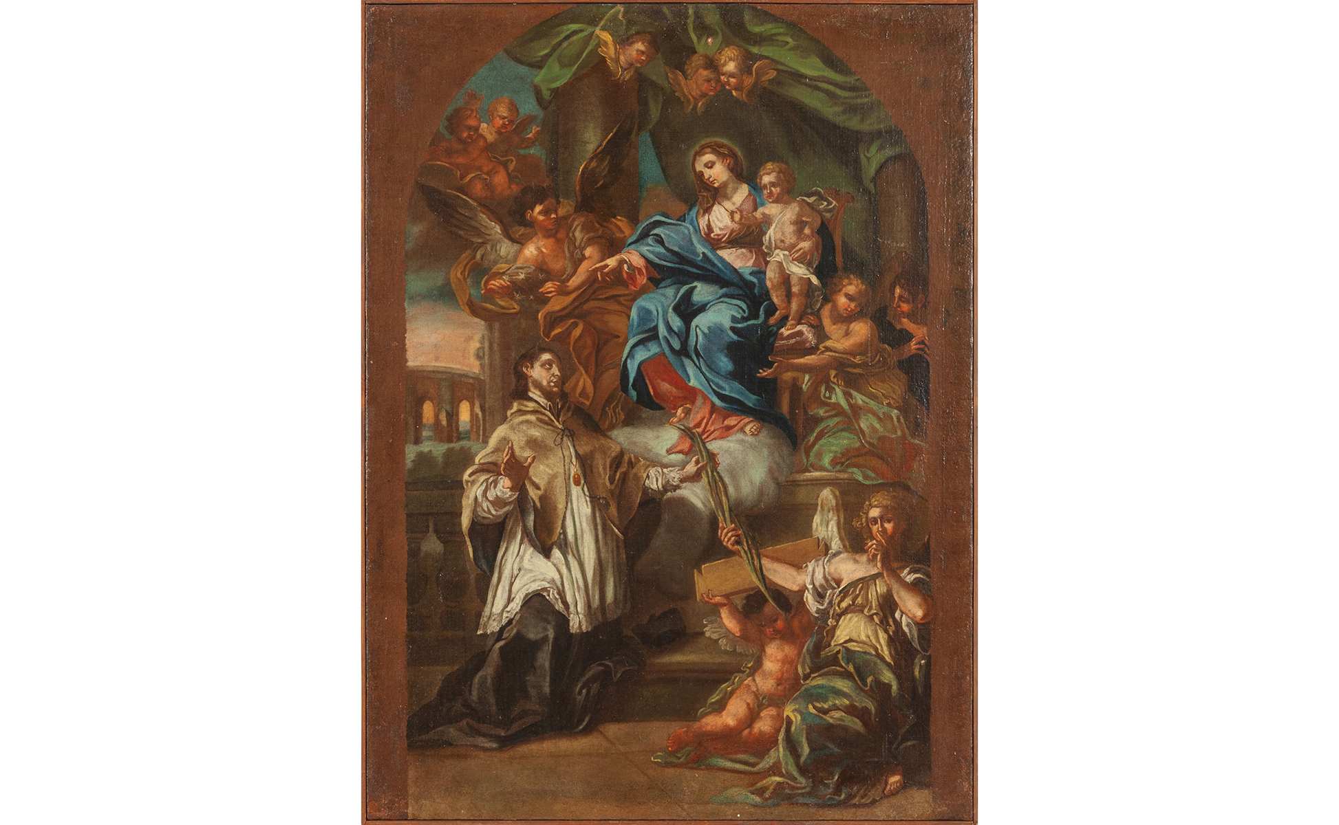 Scuola italiana sec.XVIII 'Adorazione della Madonna con il Bambino' olio