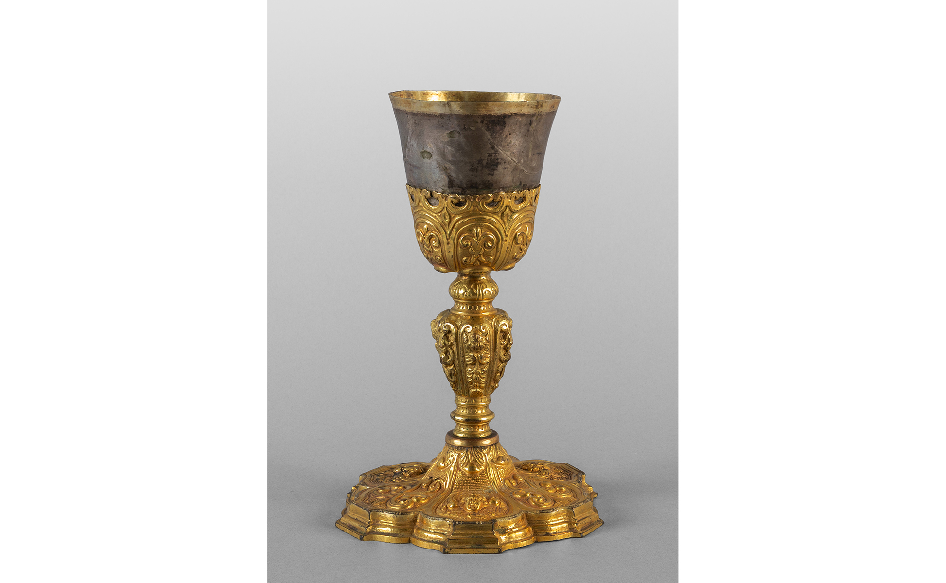 Calice in rame sbalzato e dorato con coppetta in argento Francia sec.XVI