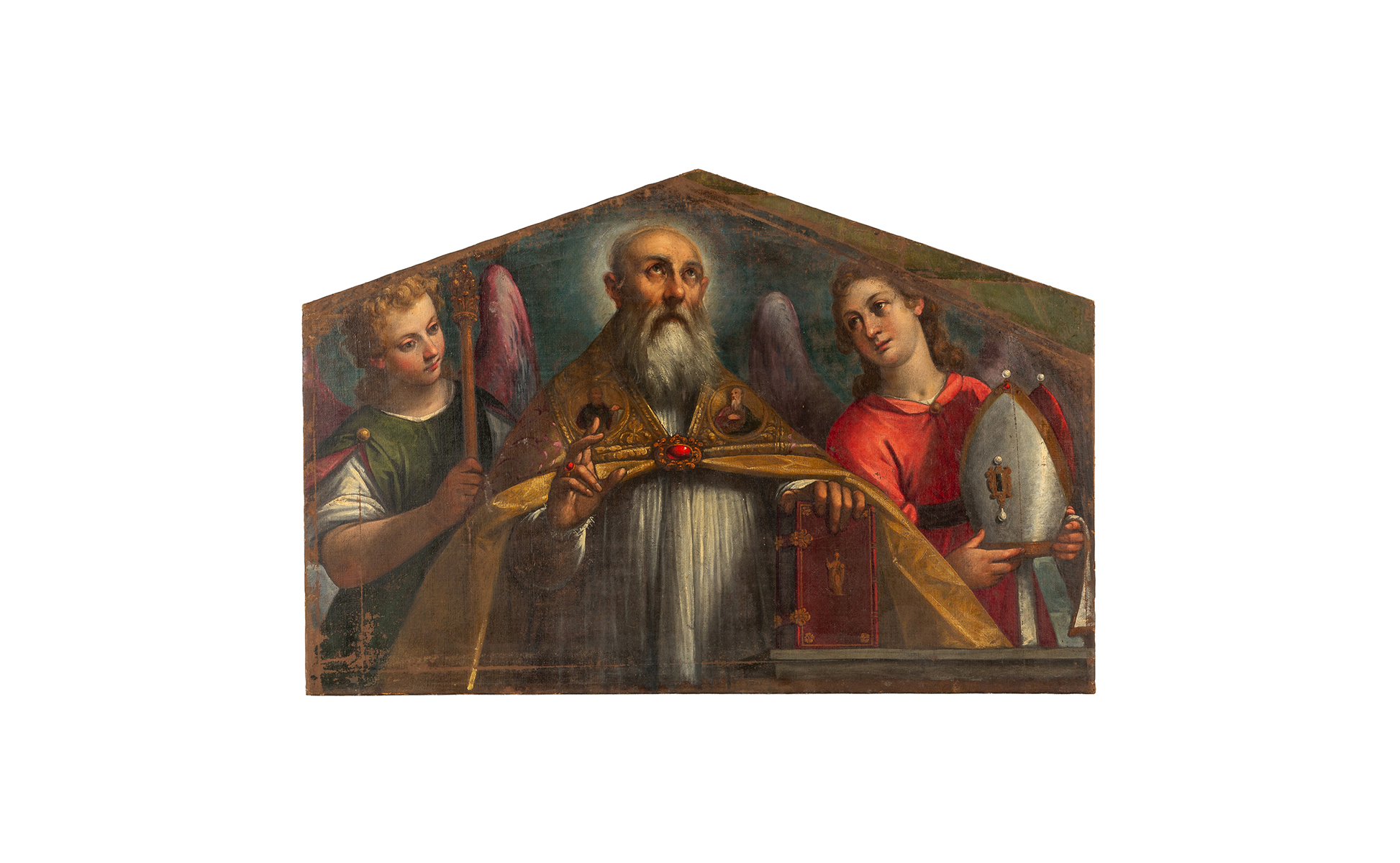 Scuola italiana sec.XVII 'San Silvestro tra gli Angeli' olio di forma trapezoidale