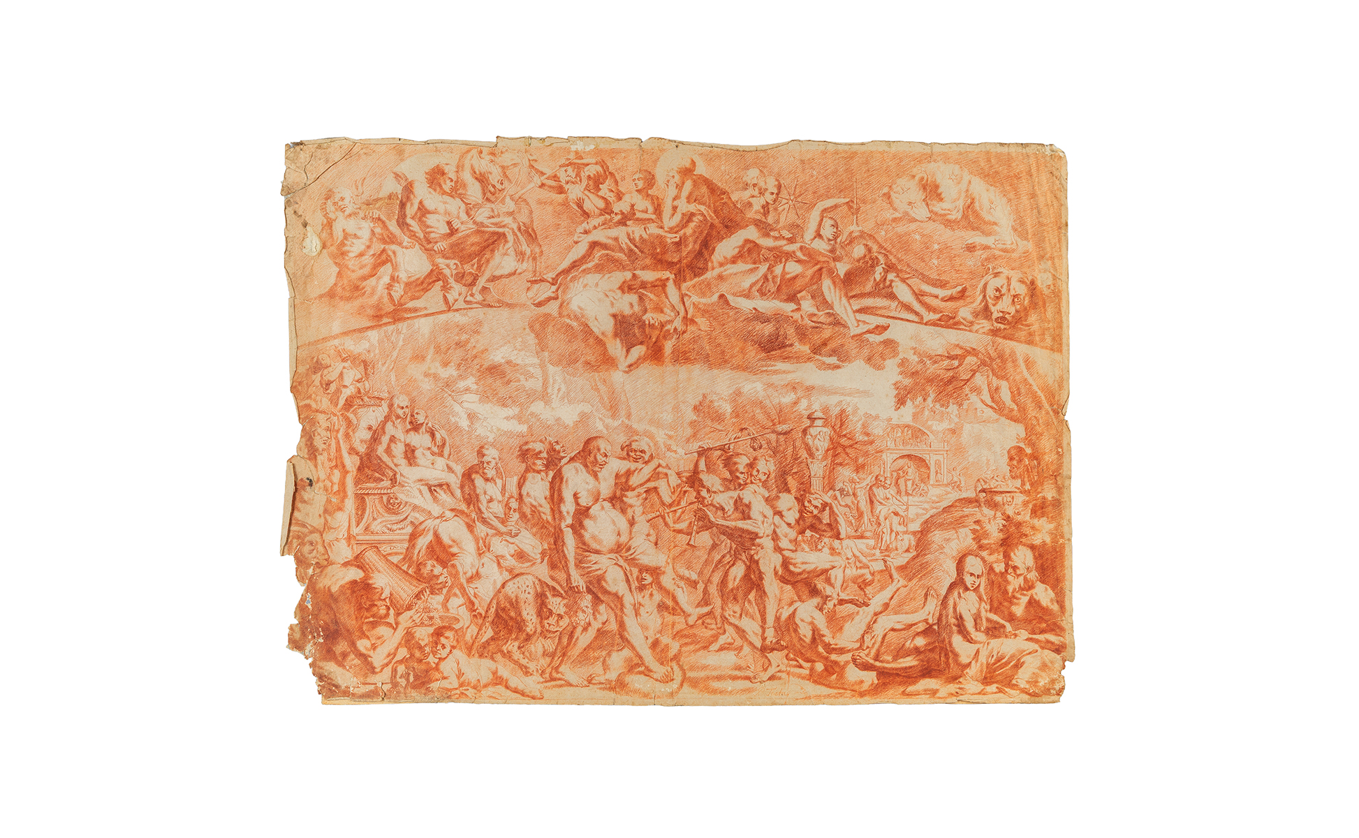 Trionfo disegno a sanguigna su carta vergellata con filigrana