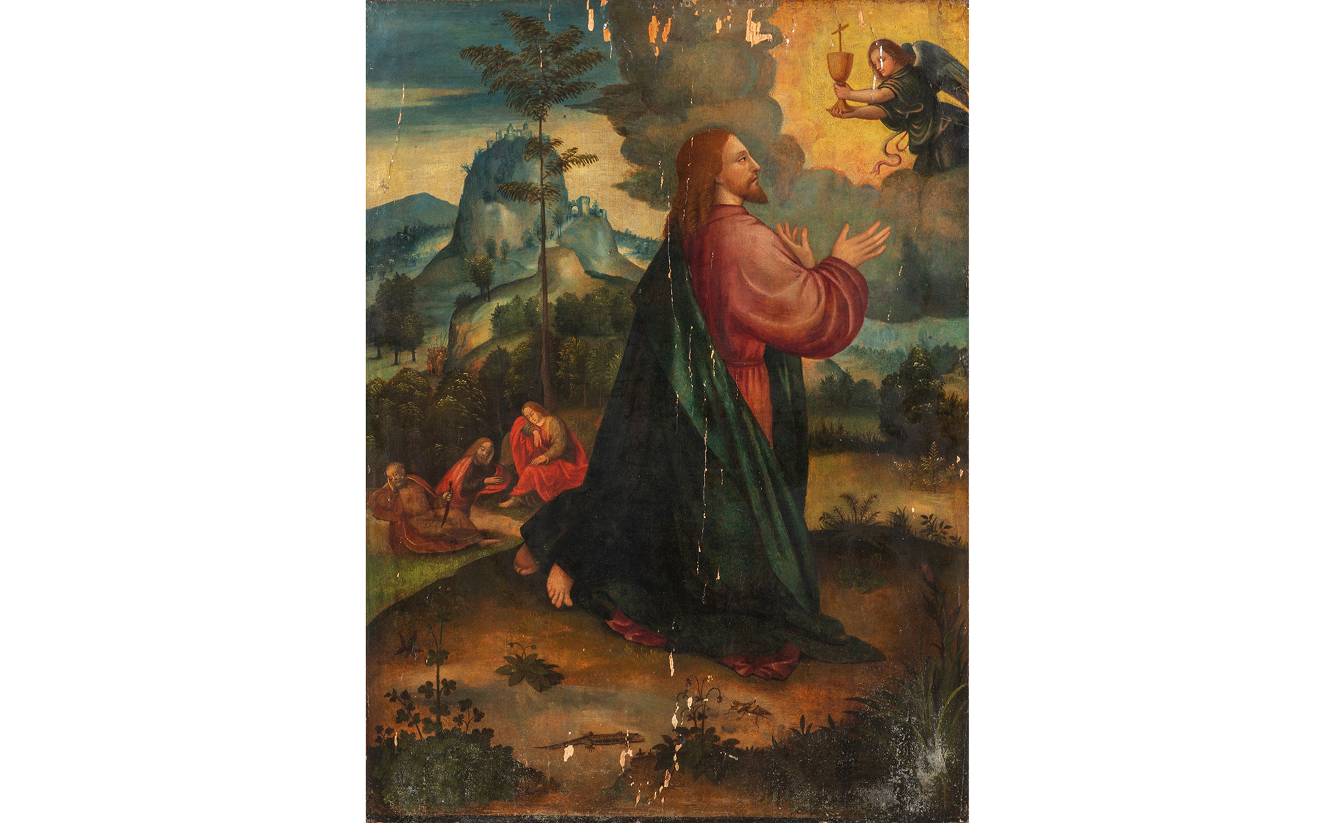 Scuola ferrarese sec.XVI (Niccolo Roselli) 'Gesù nell'orto dei getzemani' olio su tavola