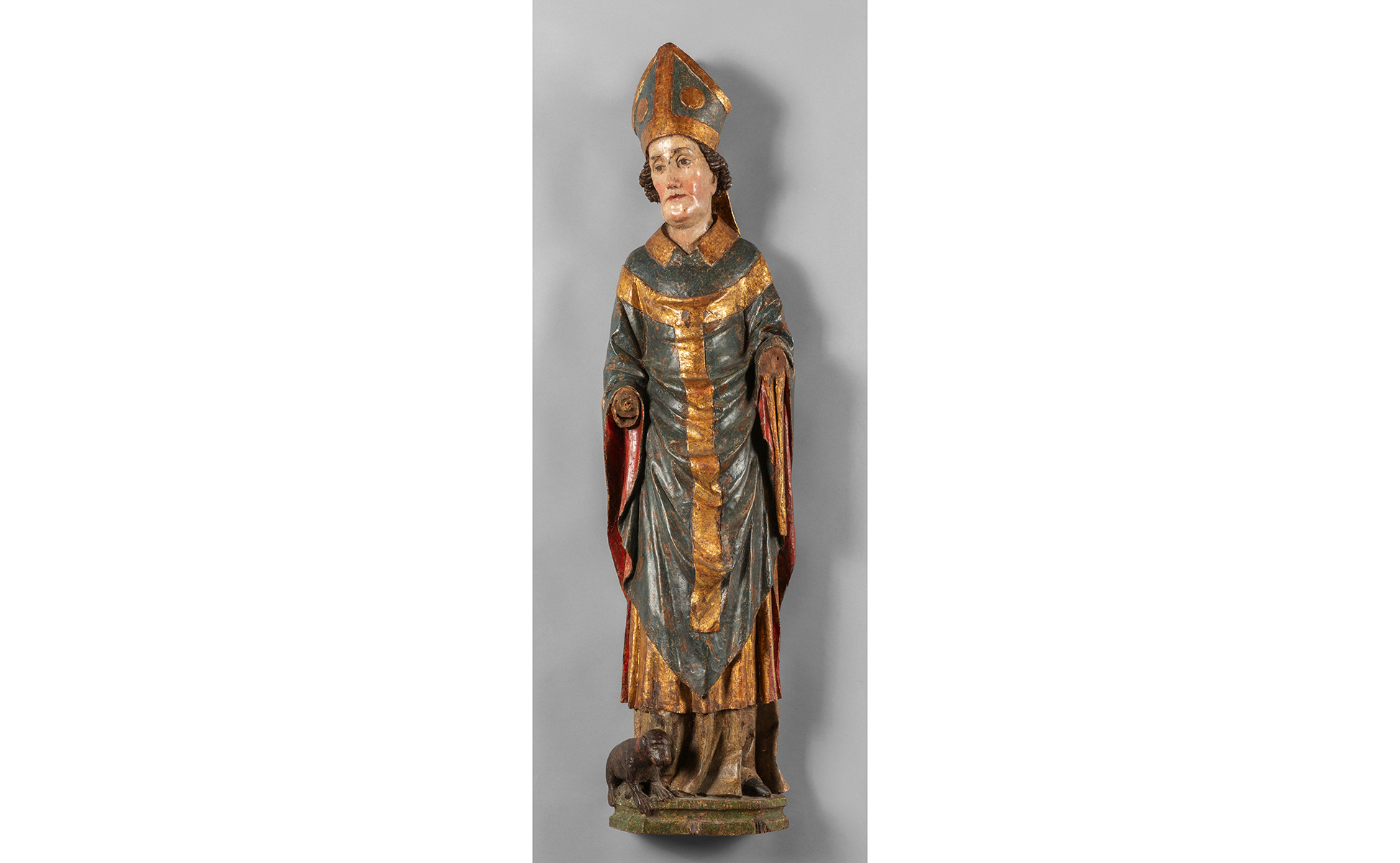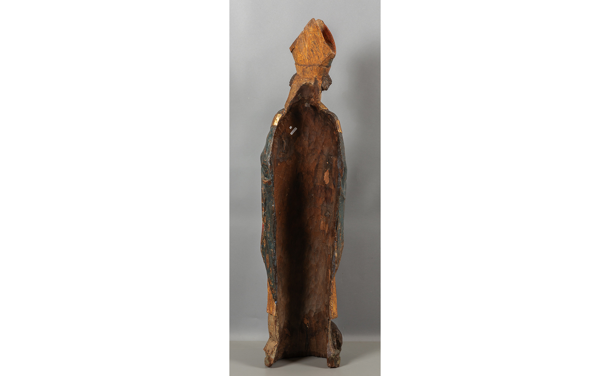 Santo Vescovo scultura in legno intagliato policromato e dorato sec.XV