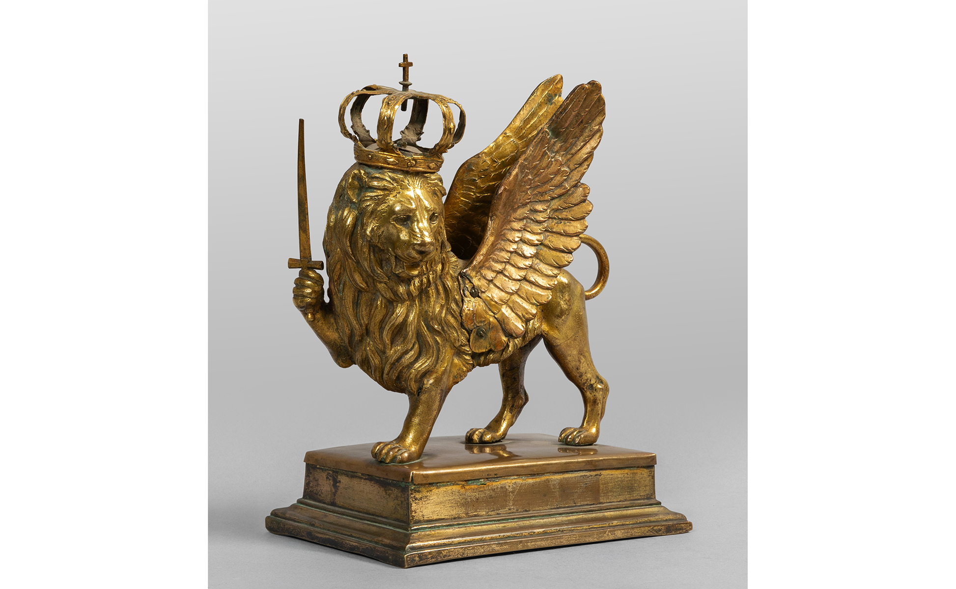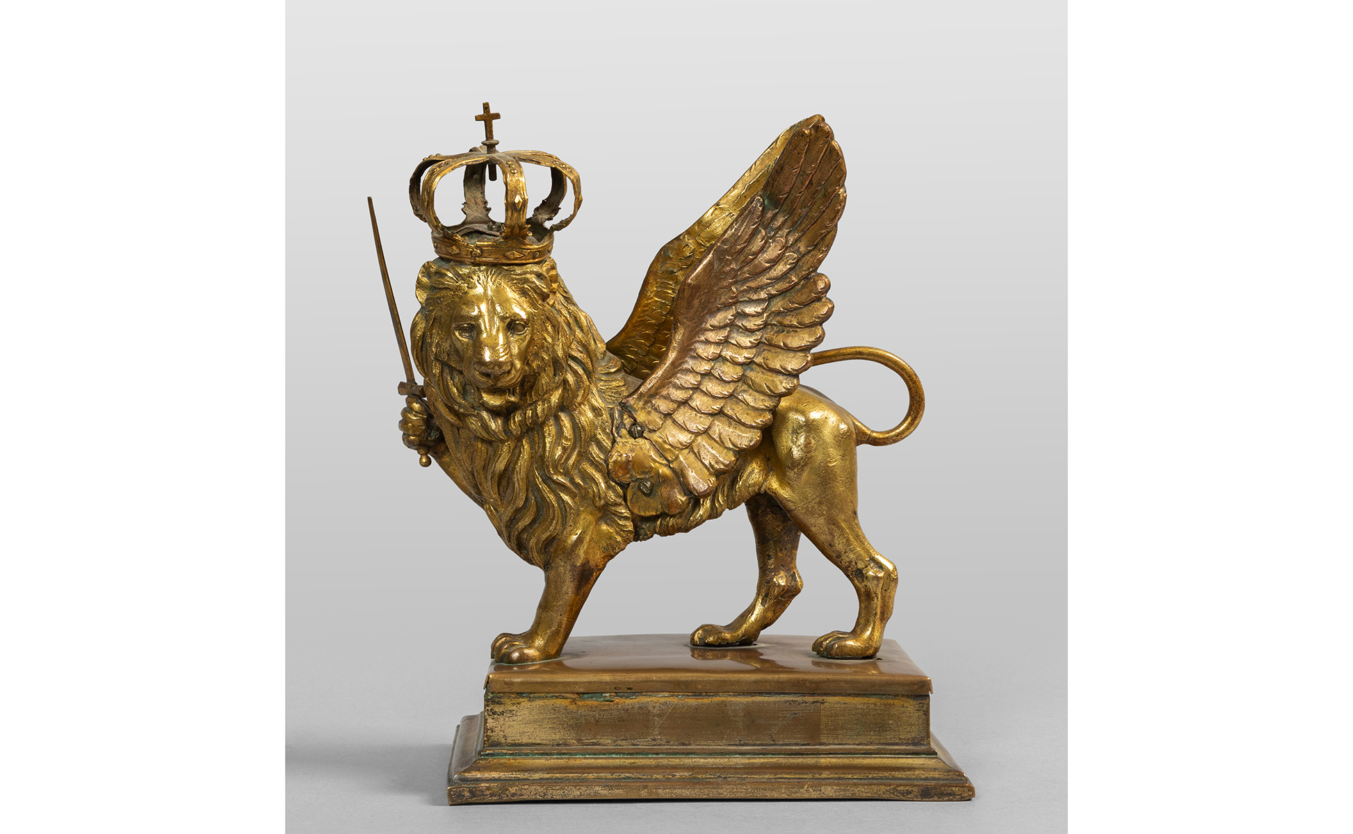 Leone alato e coronato con spada impugnata scultura in bronzo dorato simile all'emblema della Repubblica di Venezia (il Leone di San Marco) simbolo destinato a sormontare le insegne dell'esercito reale italiano. Poi sostituito per ordine dell'imperatore dall'aquila italica nei primi anni del sec.XIX