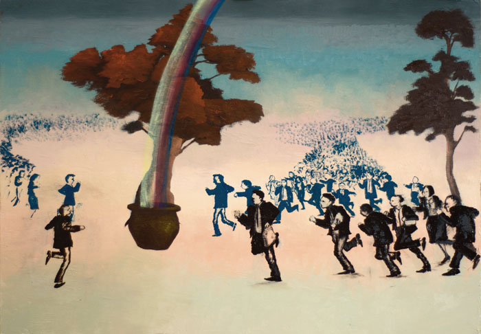 GIULIO ROSSI Massa Carrara 1988 10.000 BROKER AI PIEDI DELL'ARCOBALENO N.D. Olio su tavola 70x100 Certificato di autenticità