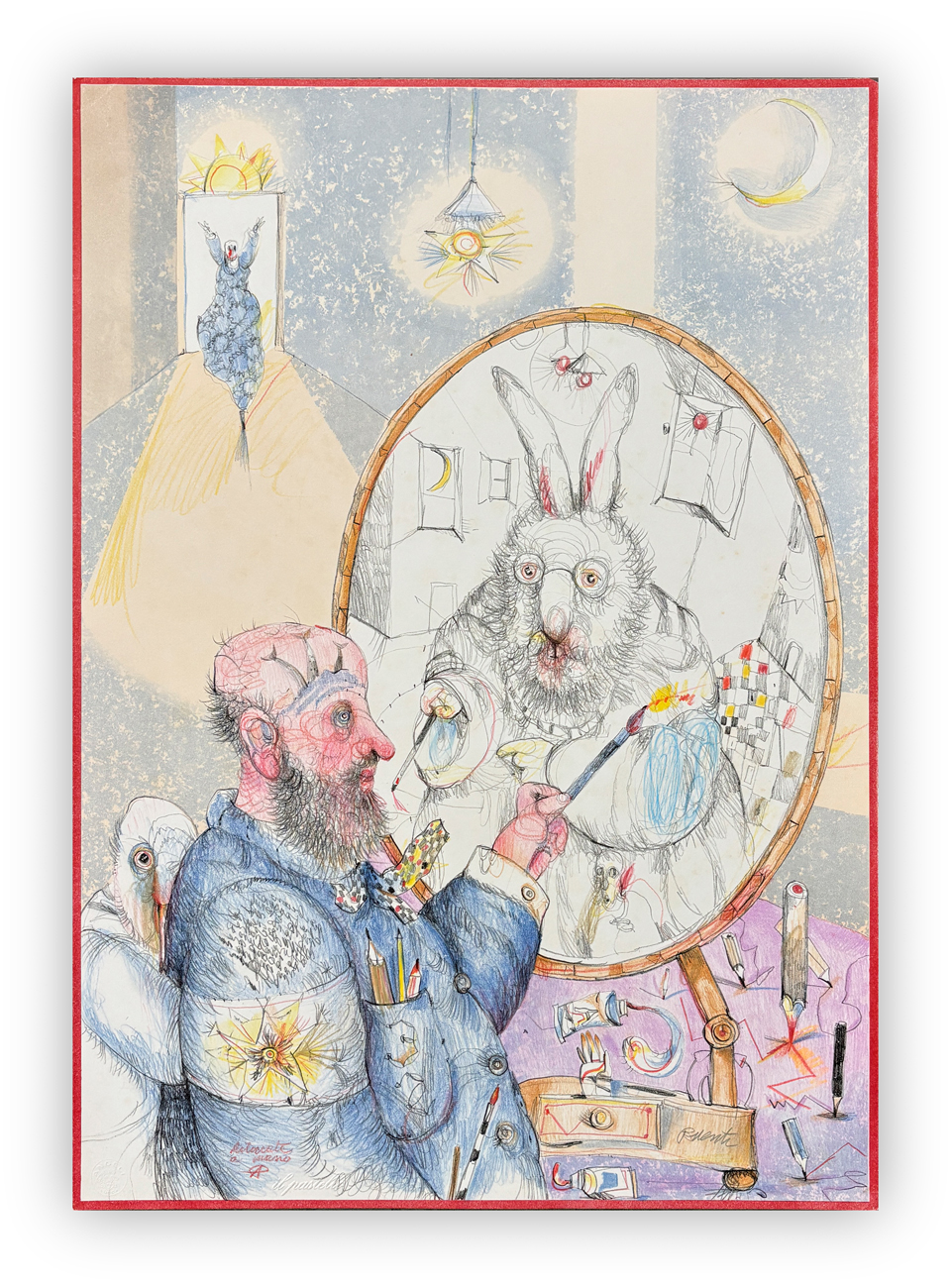 Firma e iscrizione "Colorata a mano" a matita al fronte