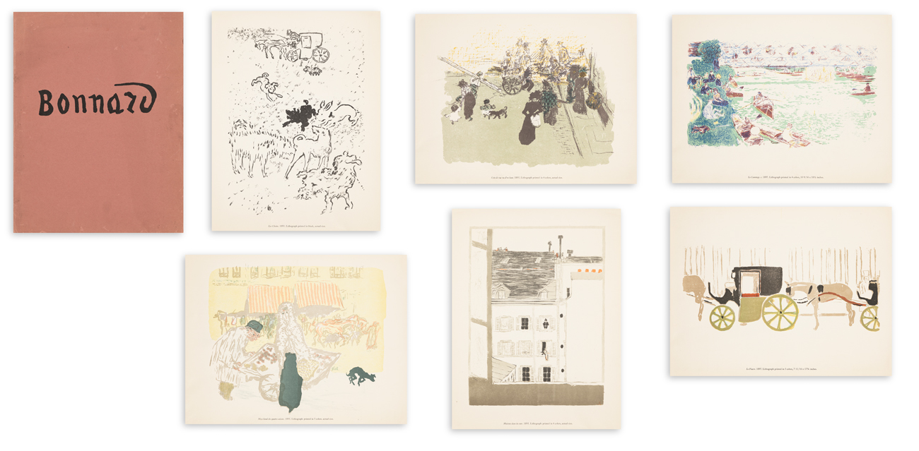 Cartella contenente 5 riproduzioni di Pierre Bonnard, nello specifico le tavole 2, 3, 4 e 5 dalla cartella "Quelques aspects de la vie de Paris"