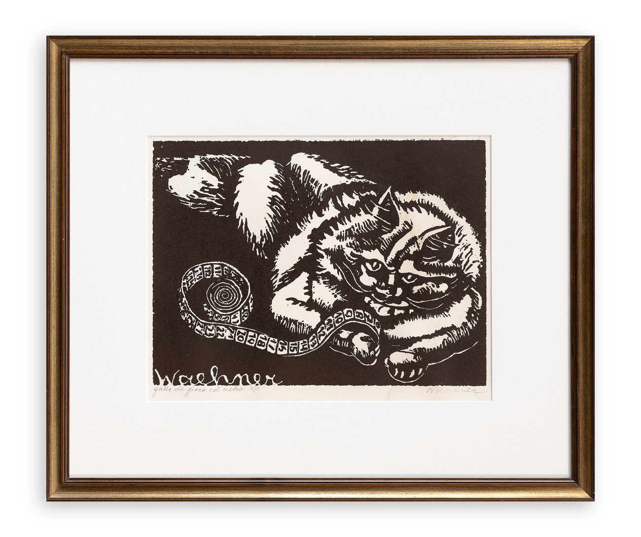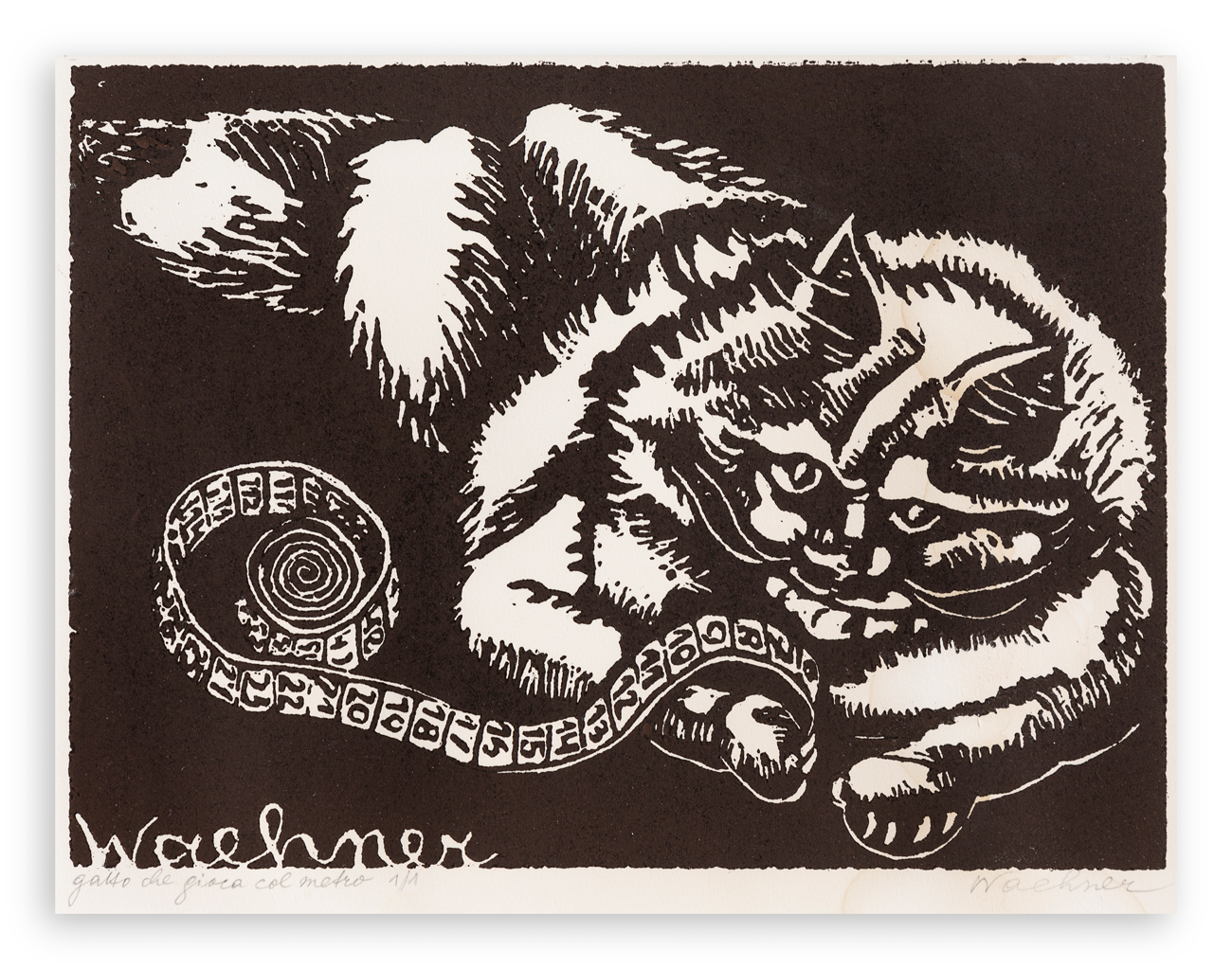TRUDE SCHMIDL-WAEHNER (1900-1979) - Gatto che gioca con il metro