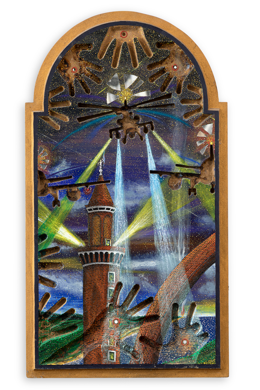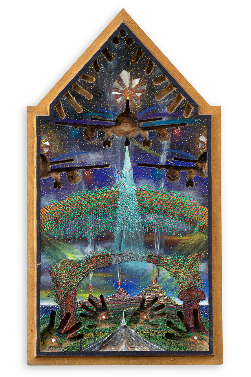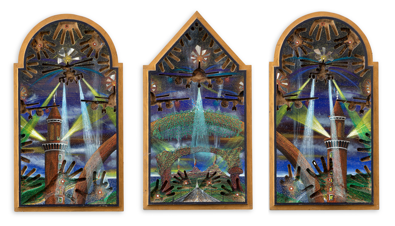 Trittico composta da 3 opere realizzate a tecnica mista e applicazioni su tavola sagomata