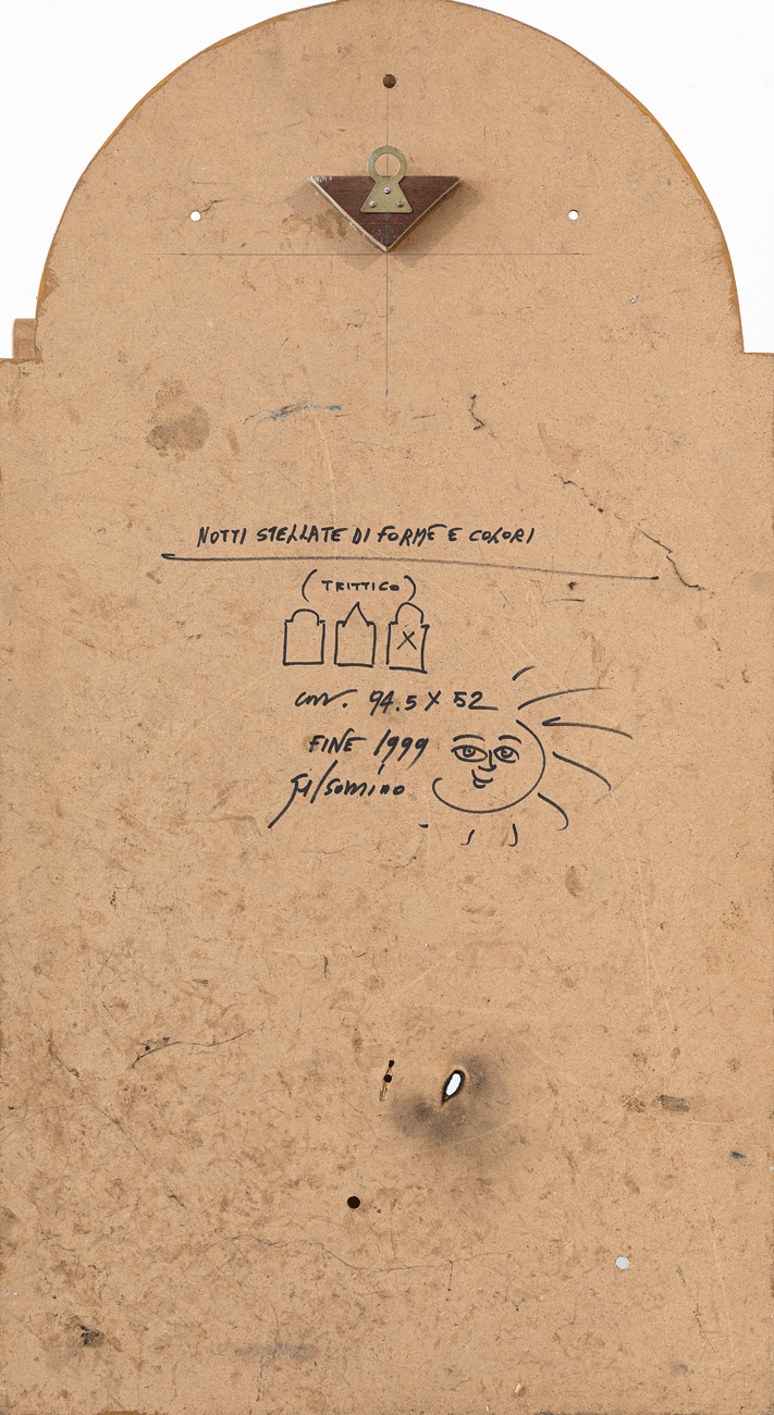 Firma, titolo, datazione, misure e indicazioni per il posizionamento al retro di ciascun elemento