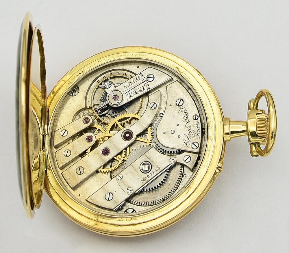 CASSA: in oro 18K, con decorazione a smalti sul retro; titolo e punzone dell'oro (testa coronata), produttore e referenza presenti sulla superficie interna del fondello piu' esterno; sulla superficie esterna del fondello piu' interno inciso: "N 27315/Golay-Leresche & fils/Golay Fils & Sthal, Srs/2 de la paix Paris"; referenza e titolo dell'oro presenti anche sulla superficie interna del fondello piu' interno; referenza e produttore leggibili sul meccanismo interno.
