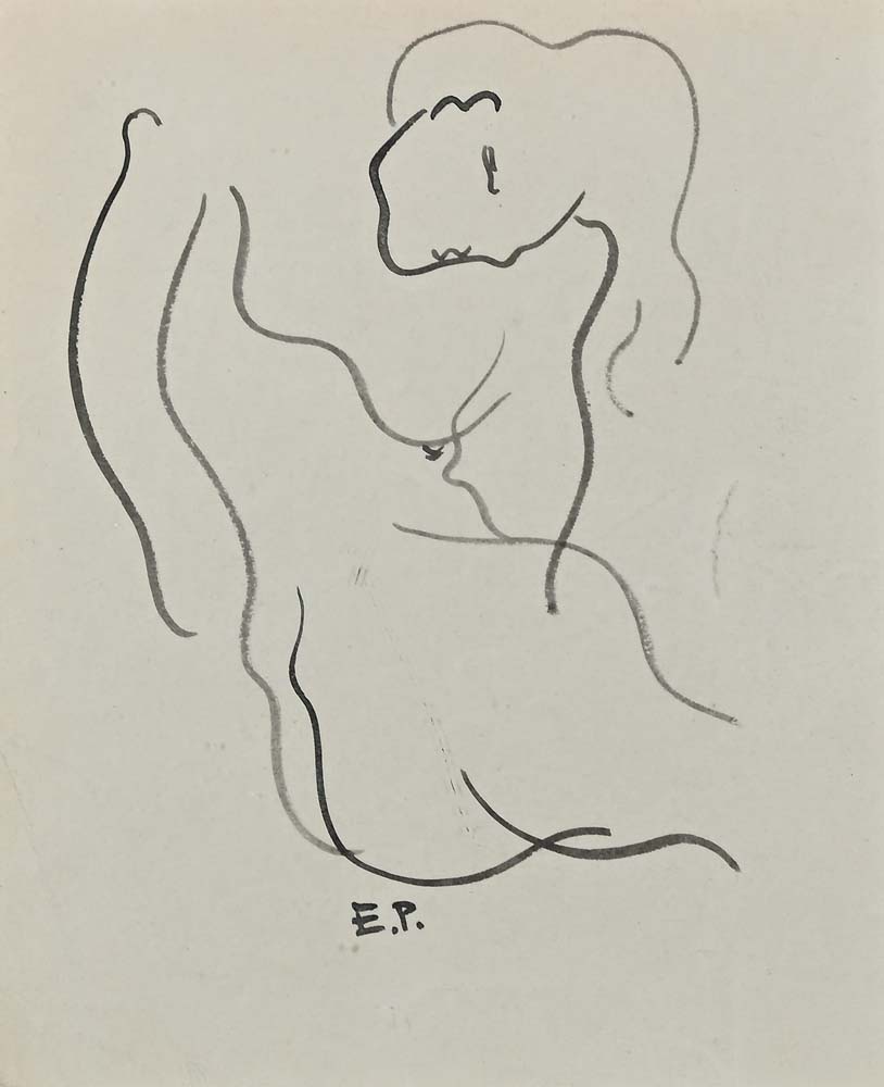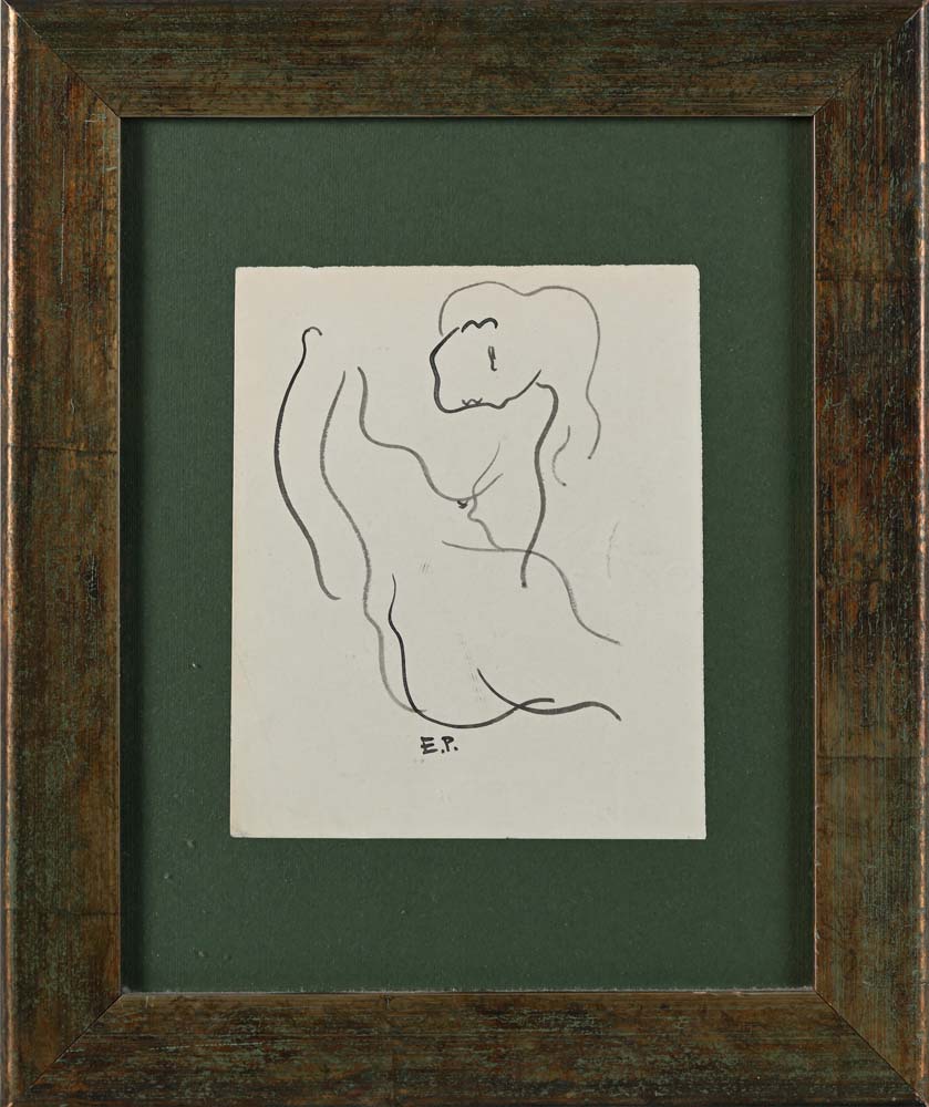 Nudo di donna Firmato in monogramma "E.P." Inchiostro su carta cm 19x15,5 - in cornice cm 36,5x30,5 Certificato di autenticità redatto e firmato di pugno dal Professor Massimo Prampolini