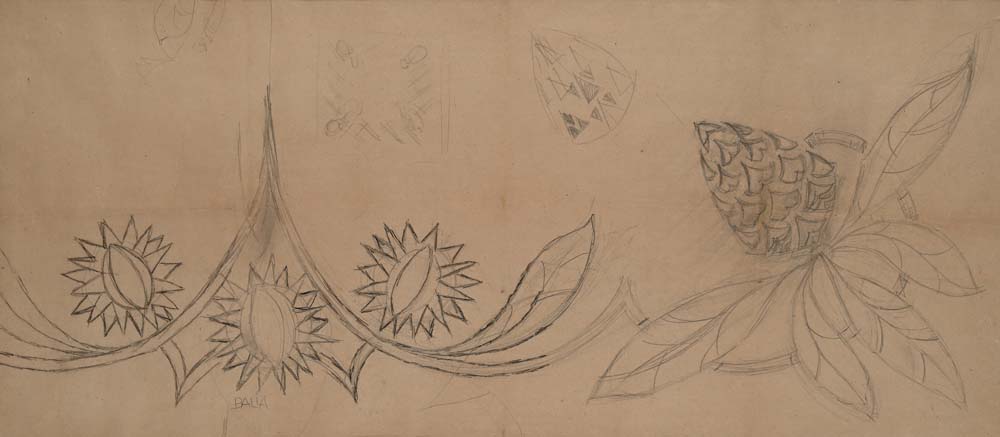 Motivo decorativo autunnale Firma in basso a sinistra "Balla" Matita su carta 50x104 cm - in cornice cm 67x121 Fabio Benzi, Giacomo Balla. Dal primo autoritratto alle ultime rose, Manfredi Edizioni, Imola 2021, n.47, p.122 Giacomo Balla. Dal primo autoritratto alle ultime rose 15 aprile-8 maggio 2021, Roma, Galleria Russo