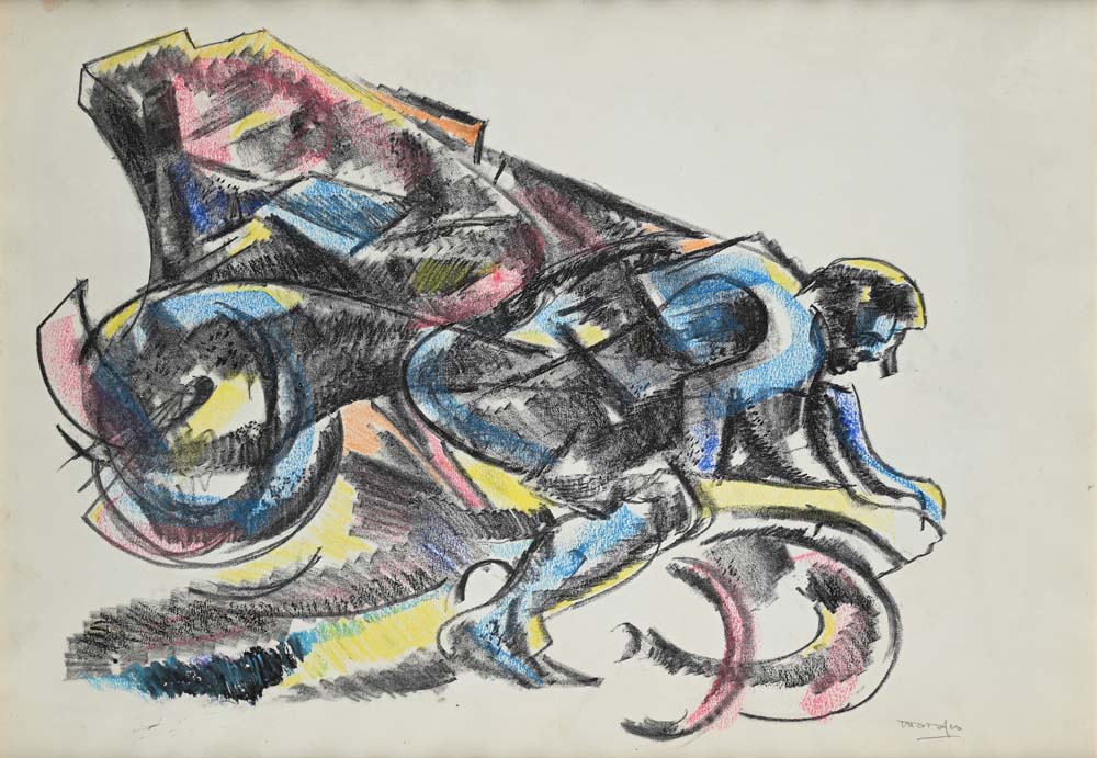 Ciclista Firma in basso a destra "Marasco" Pastelli cerosi su carta cm 50x70 - in cornice cm 60x80