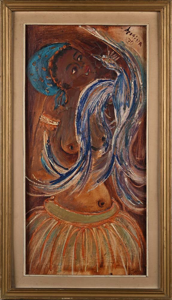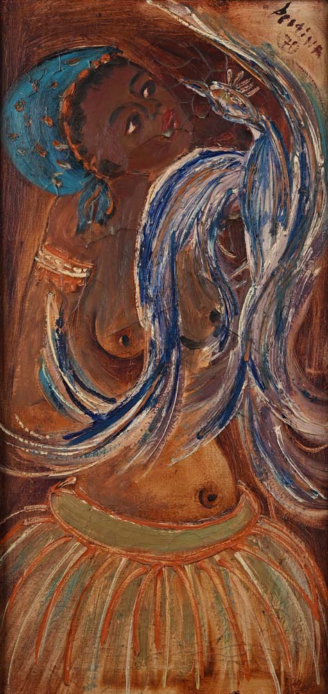 Bertina Lopes (Maputo 1924 - Roma 2012) Danzatrice con uccello 1970 Firma e...