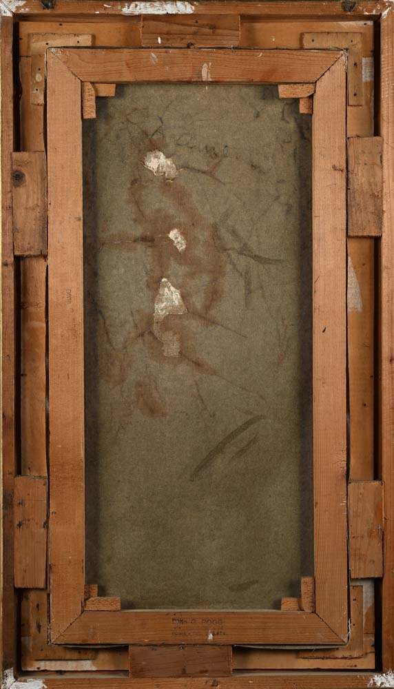 Danzatrice con uccello 1970 Firma e data in alto a destra "Bertina '70" Olio su tela cm 80x40 - in cornice cm 94x54