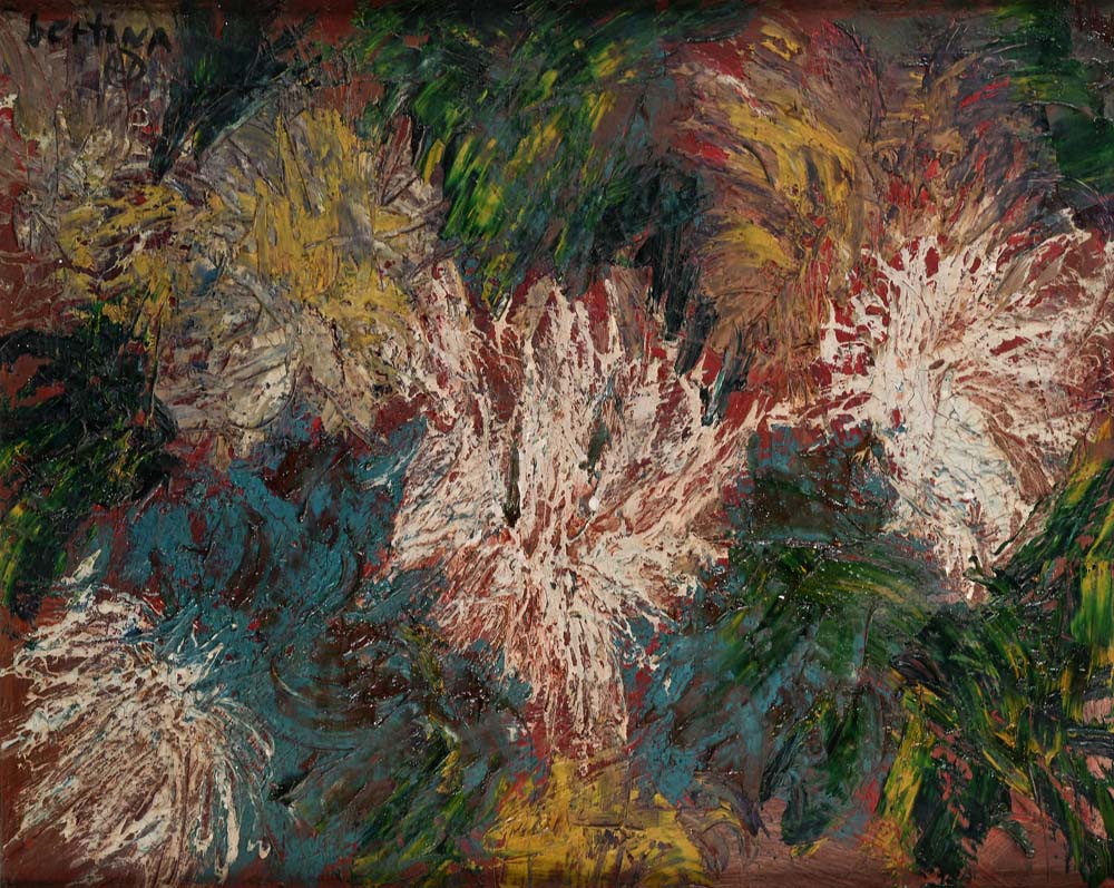 Fiori Astratti 1971 Firma e data a sinistra "Bertina '71" Olio su tela cm 50x40 - in cornice cm 64x54