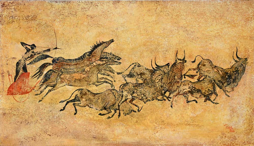 Khaled Rahhal (1926 - 1987) Il cacciatore etrusco 1966 Firma e data in basso...