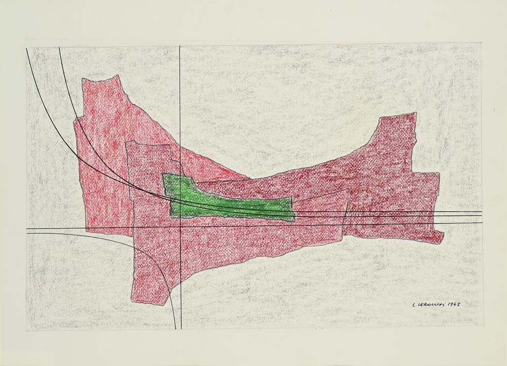 Struttura n.4 1965 Firma e data in basso a destra "L. Veronesi 1965". Al verso reca titolo Pastelli, matita e inchiostro su carta cm 47x67,5 - in cornice cm 50x70
