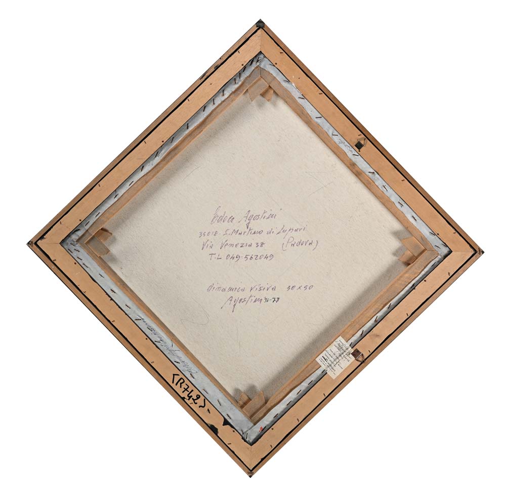 Dinamica visiva 1976-1977 Firma in basso al centro "Agostini '76-'77". Al verso reca titolo, firma, data e luogo Acrilico su tela cm 50x50 - in cornice cm 57x57
