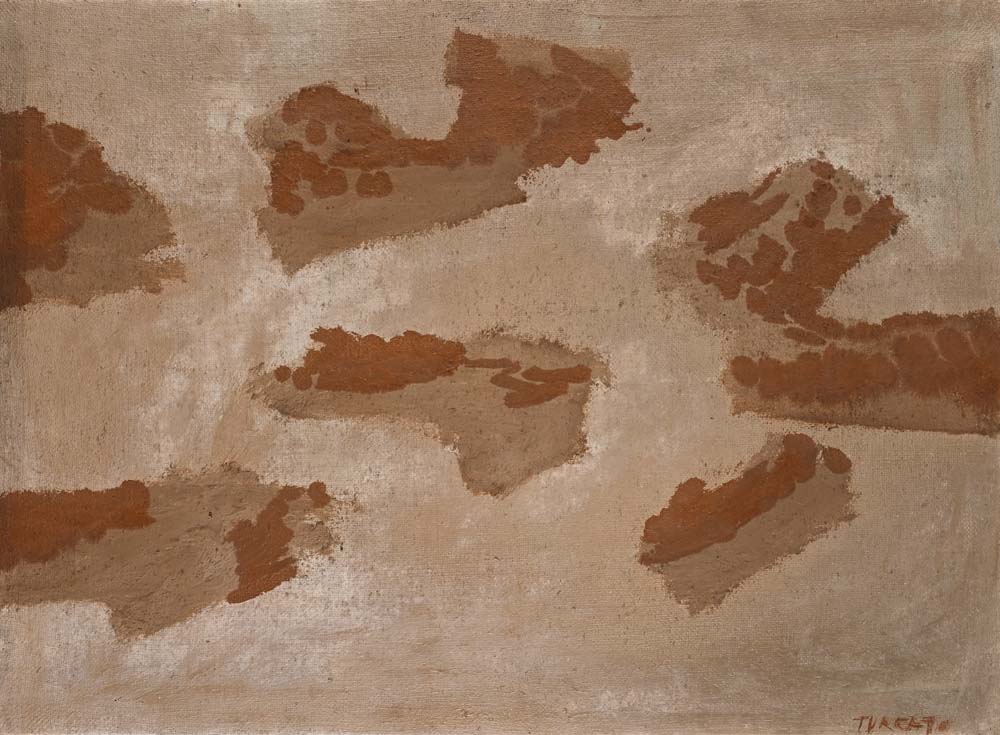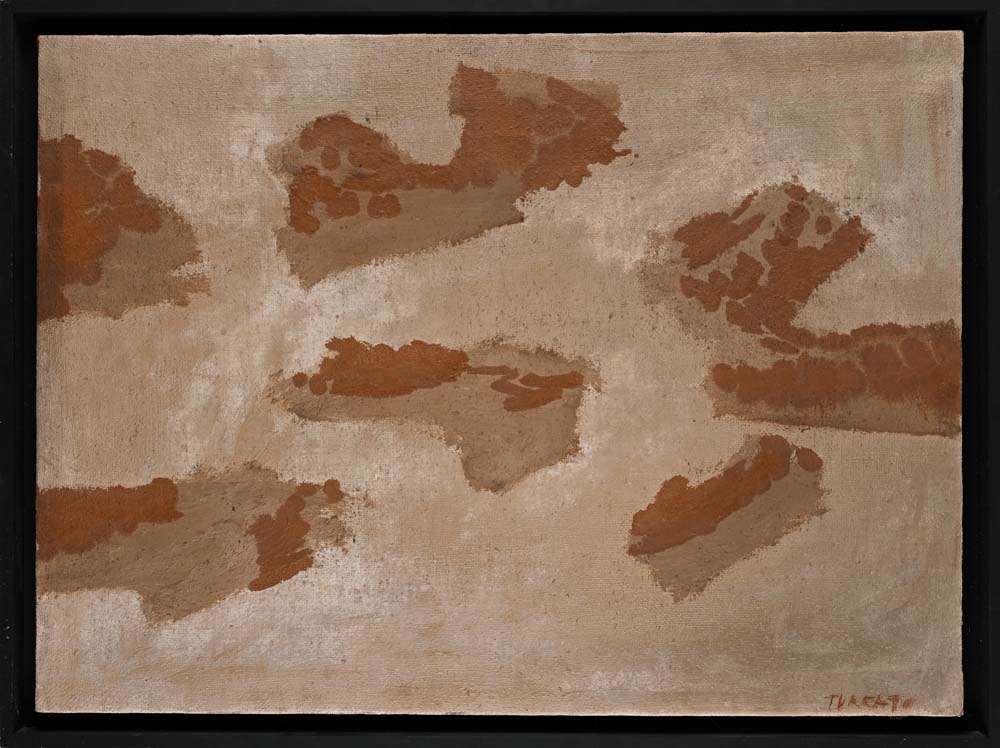 Ritrovamenti 1963 Firma in basso a destra "Turcato". Al verso reca diversi cartigli: etichetta della Galleria Edieuropa QUI arte contemporanea; etichetta della Galleria L'Isola di Trento; etichetta Galleria d'Arte Contemporanea De Crescenzo & Viesti relativi alla mostra "Giulio Turcato - un percorso antropologico" 6 dicembre-20 gennaio 2007; etichetta della Galleria d'Arte Cardi di Milano.