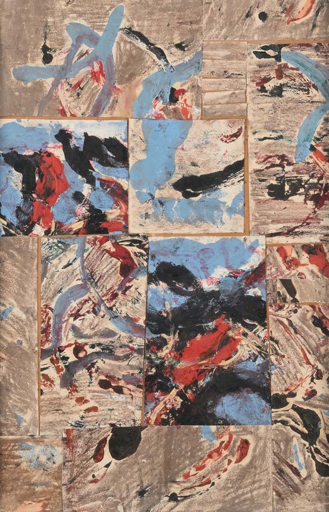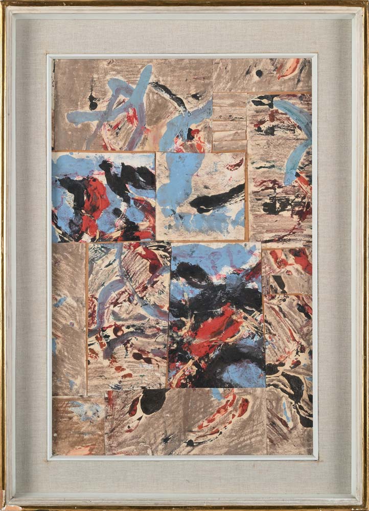 Collage n. 122 1961 Firma, titolo e data al verso "Remo Bianco, Collage n.122, Milano 1961" Ritagli di tela dipinti ad olio applicati su tavola cm 60x40 - in cornice cm 75x55 Coll. Eredi Gugliemo Battistoni, Roma