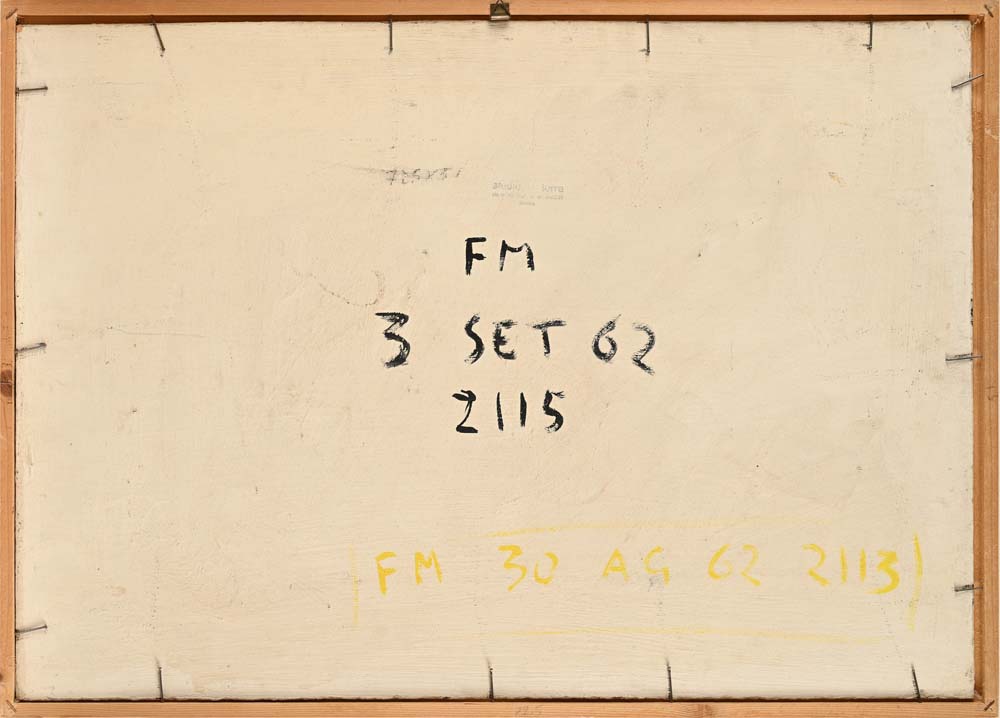 Senza titolo 1962 Firma e data al verso "F. M. 3 set 62". Timbro della Galleria Studio La Torre Pistoia Acrilico su tavola cm 51x72 - in cornice cm 54x75