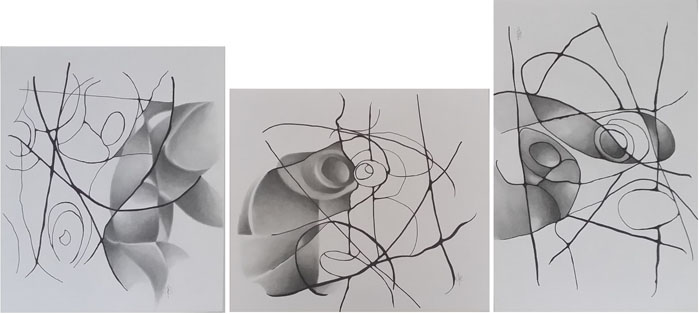 LAURA COLANTONIO Roma 1976 LOUIS'S DRAWINGS N.D. Tecnica mista su carta (composto da n. 3 disegni) 56x140 Certificato di autenticità