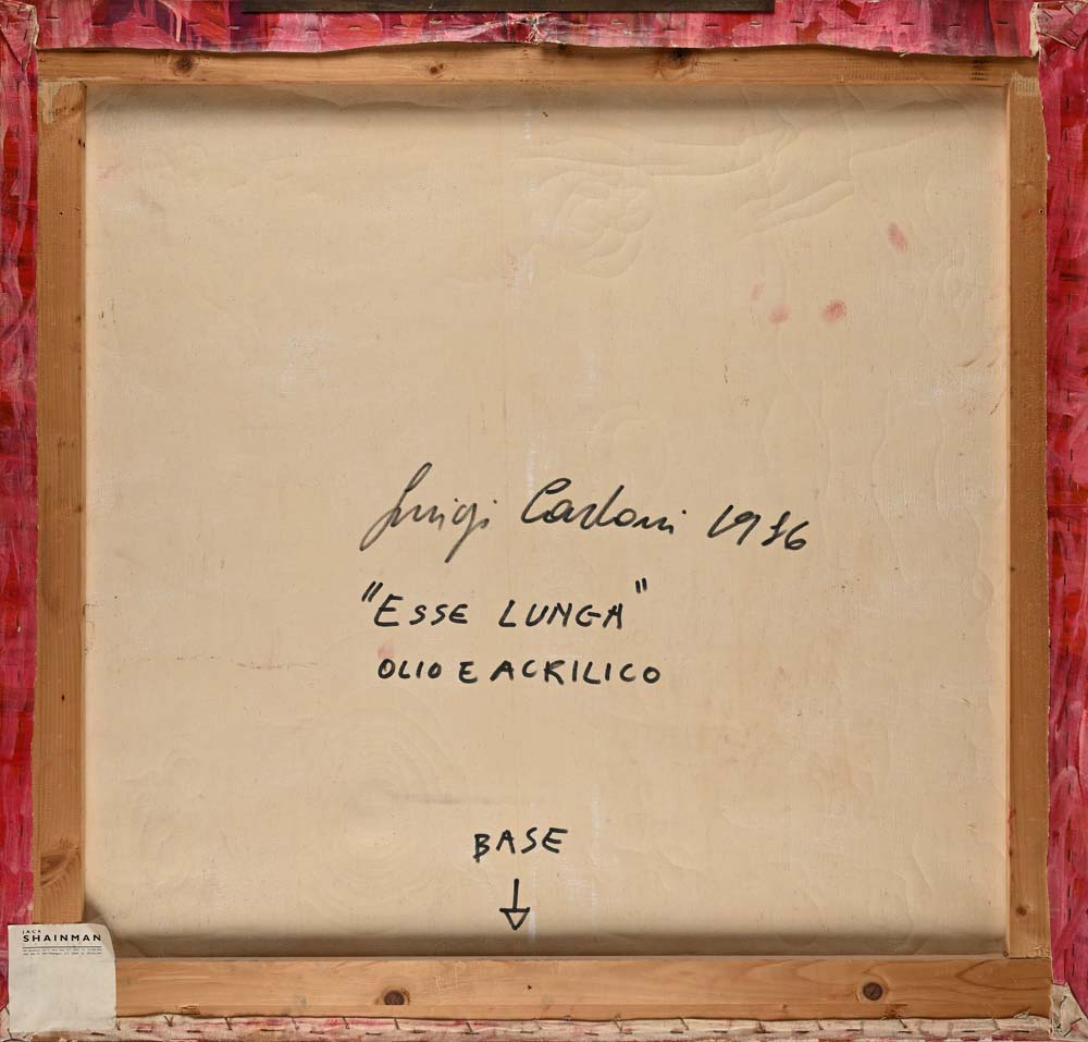Esse Lunga 1986 Firma, titolo e data al verso "Luigi Carboni 1986, Esse Lunga". Etichetta della Jack Shainman Gallery, New York Olio e acrilici su tela e metallo cm 100x105